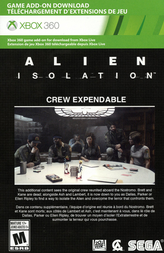 [Below: Alien Isolation Xbox 360 version. Game add-on insert. Front.]