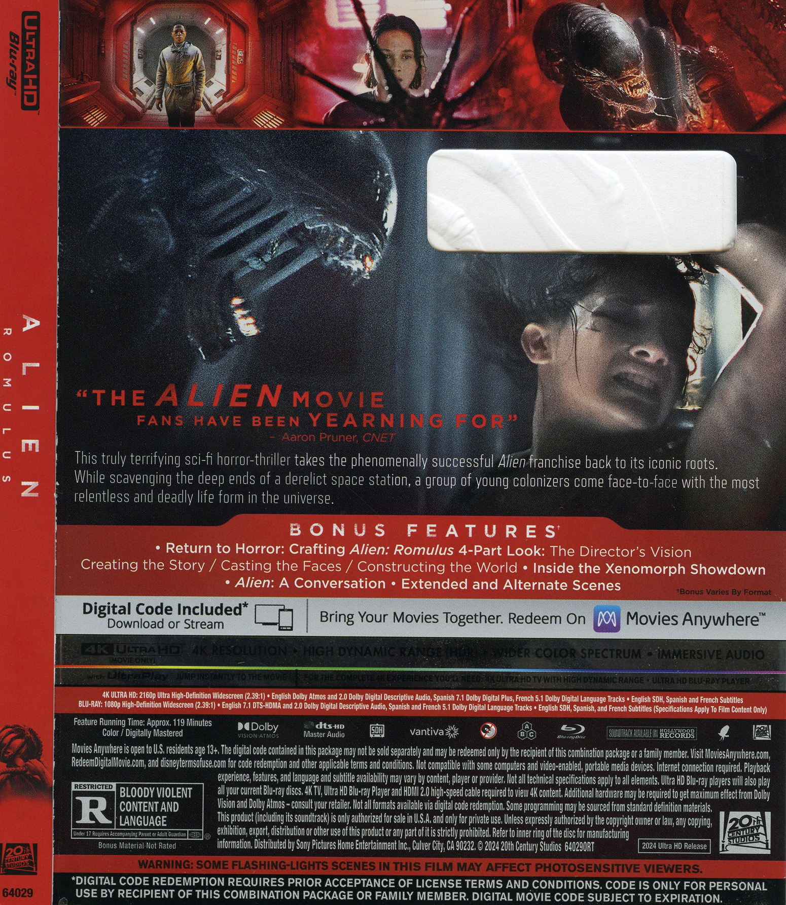 [Below: Alien 40th anniversary Blu-ray/4k release. This is the front of the cardboard slip case.]