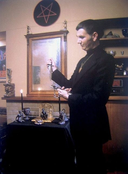 [Below: Some random Michael Aquino pictures, note his very odd eyebrows, he claimed these were natural.]