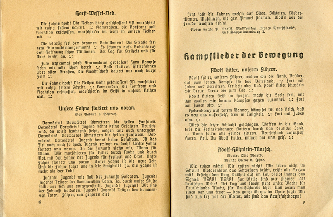 [Below: Booklet with Horst Wessel Lied.]