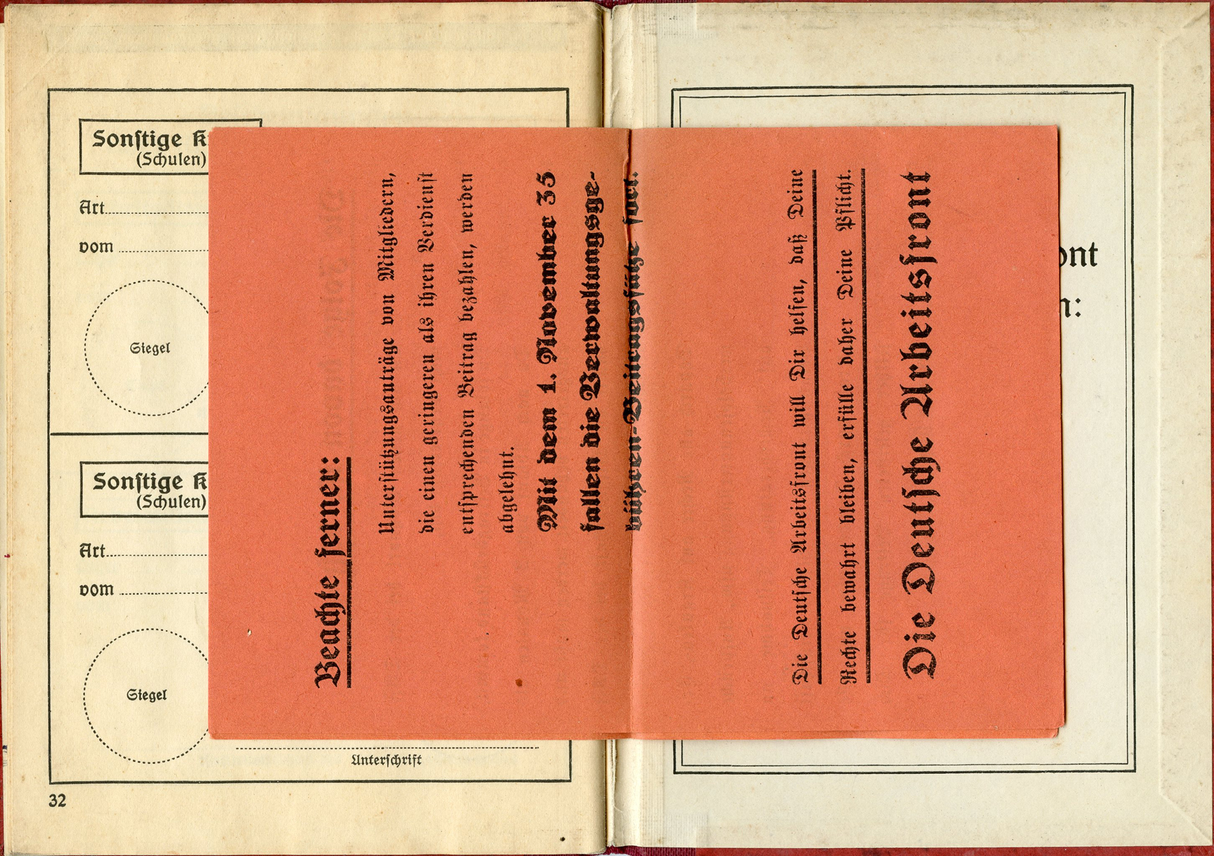 [Below: The 'merkblatt' (information sheet) unfolded.]