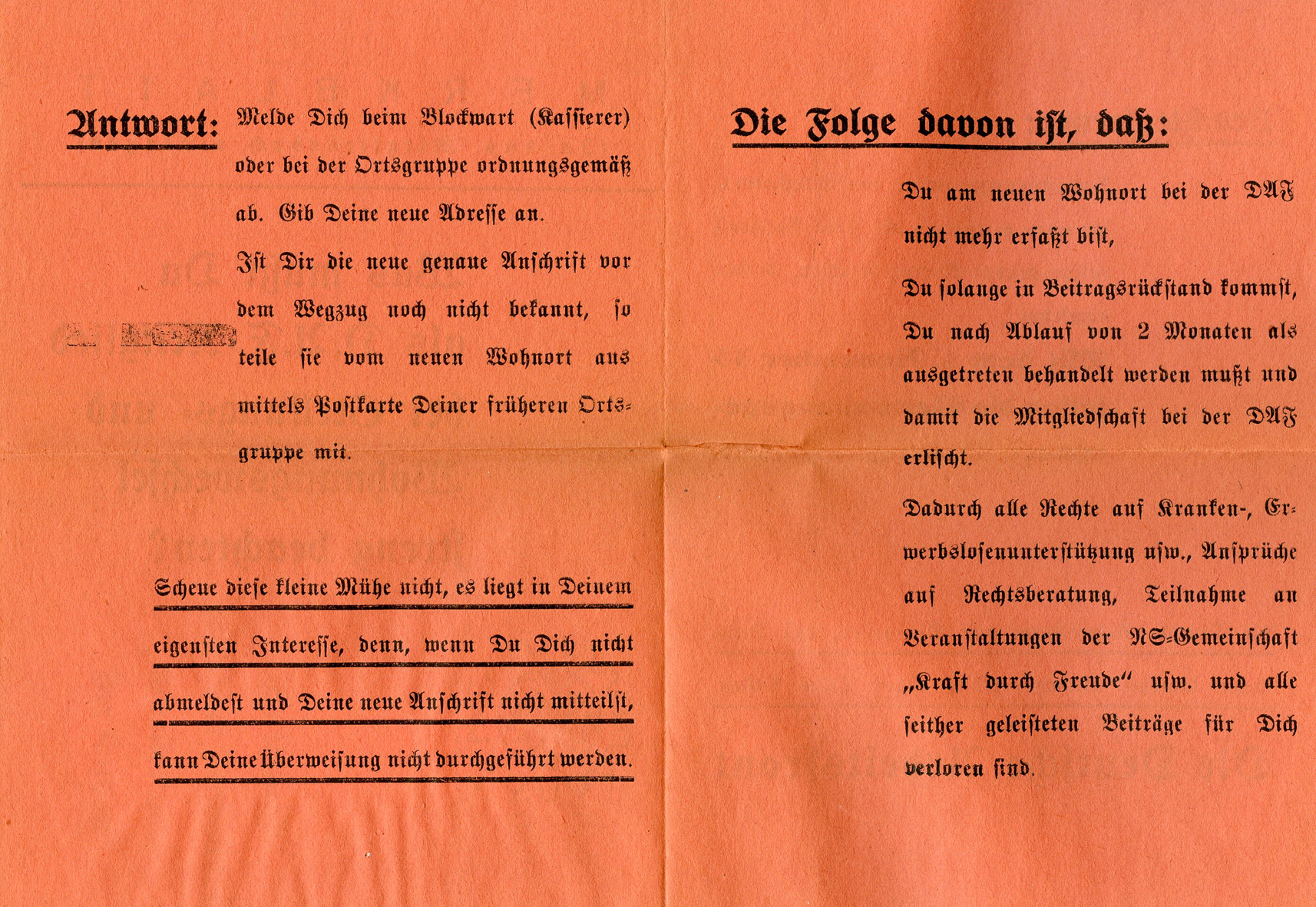 [Below: The side of the 'merkblatt' (information sheet) that is glued we cannot see entirely.]