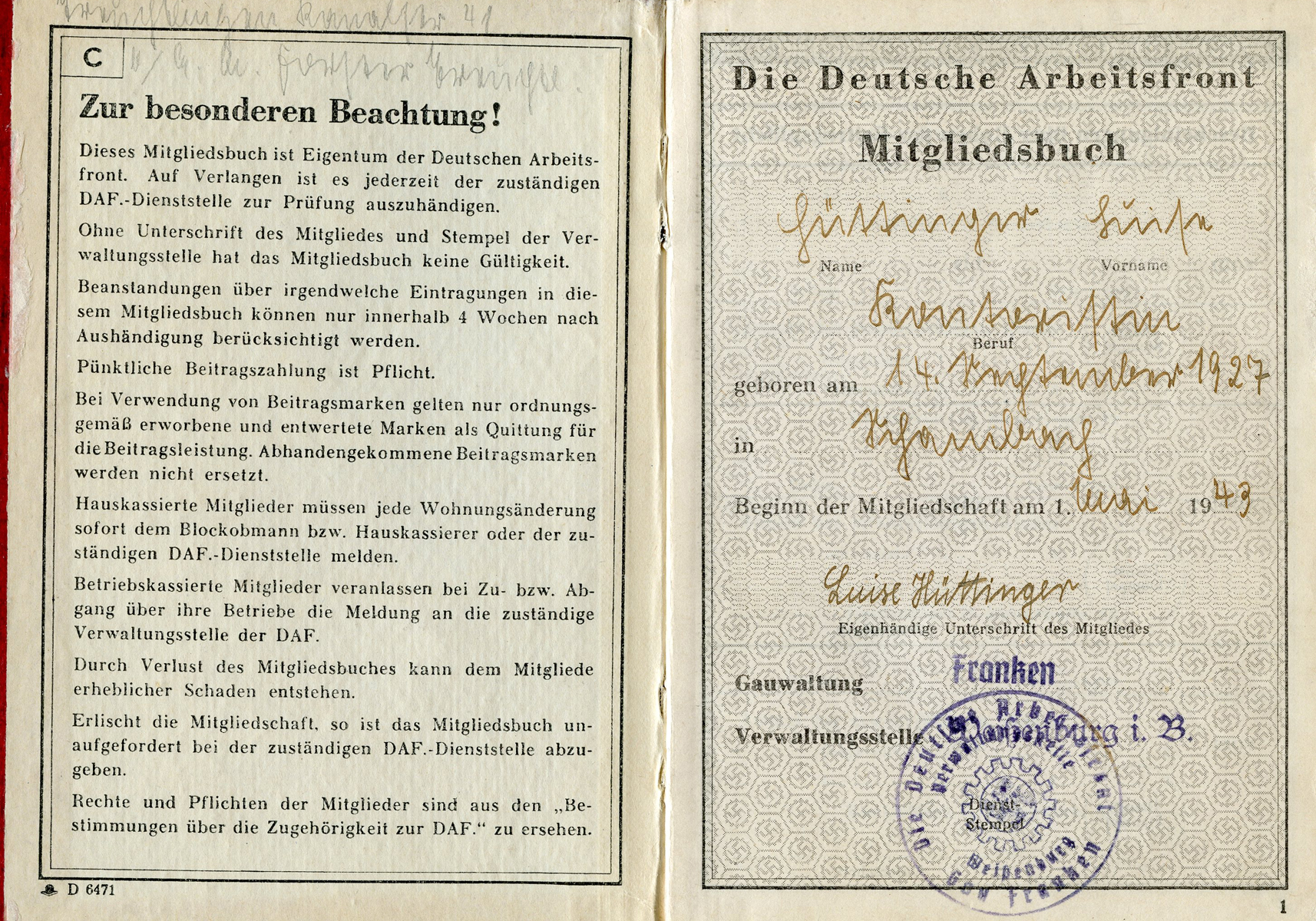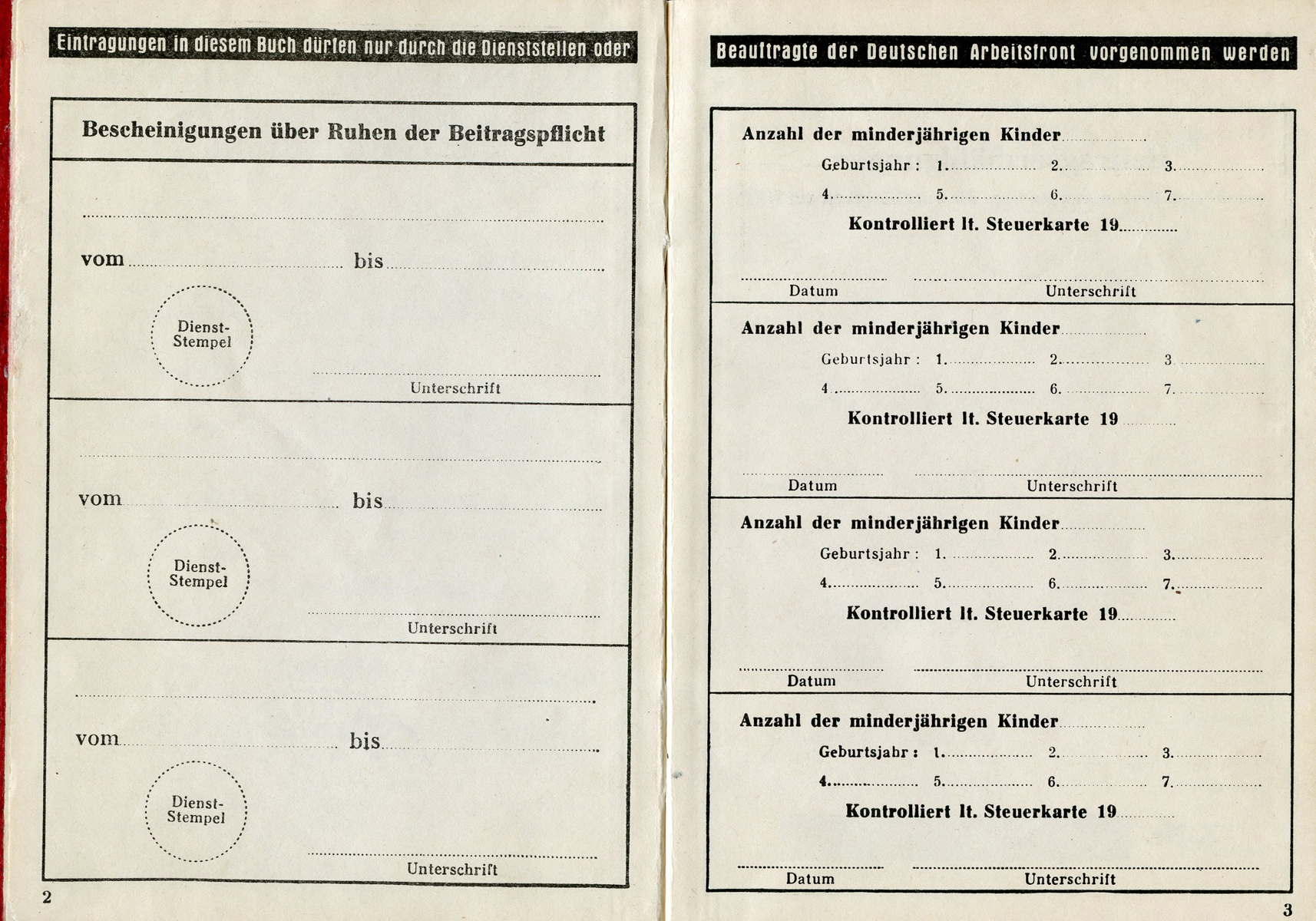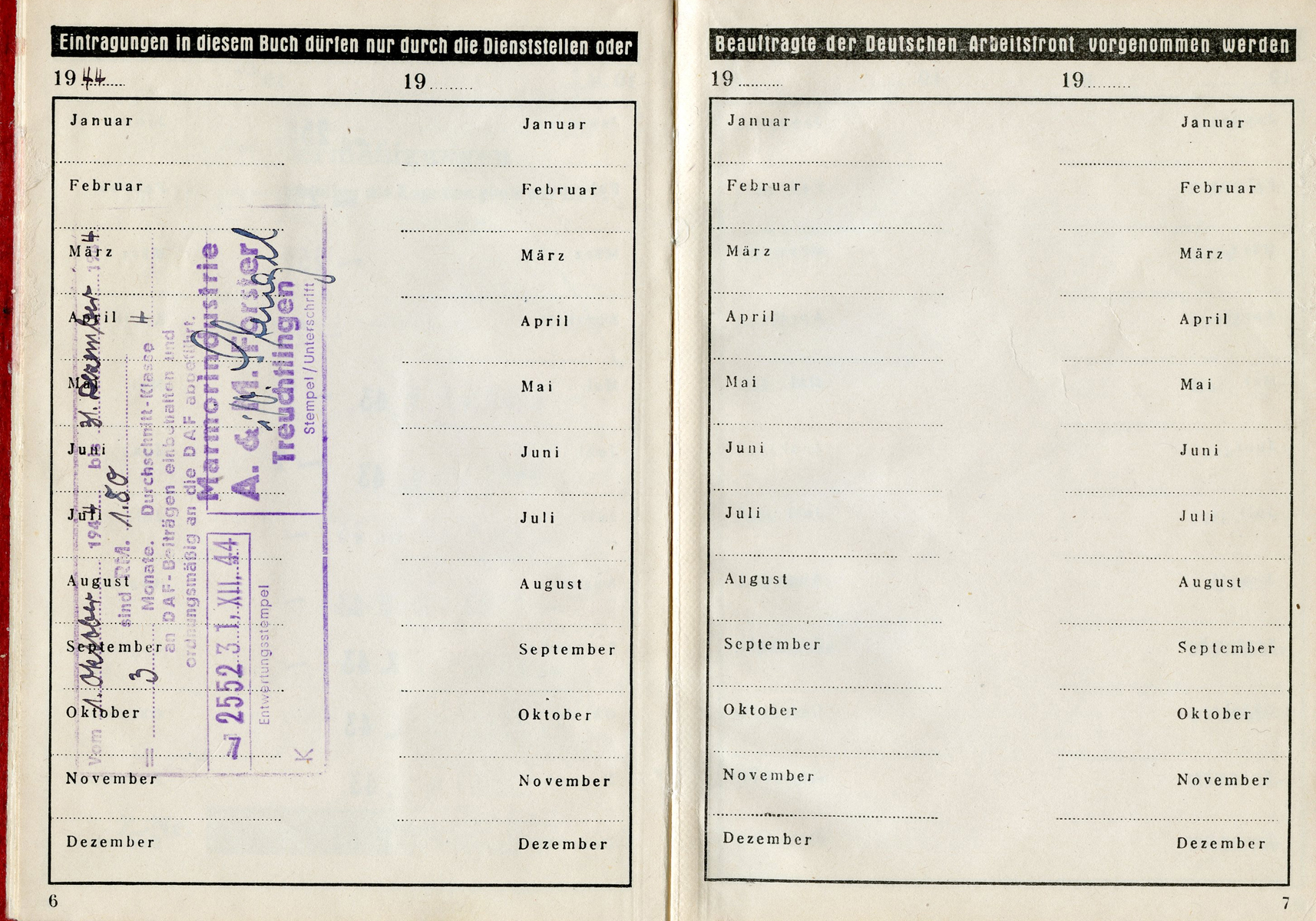 [Below: Note the gold DAF symbols is now a cheap grey. This was obviously due to the fact that this is from late in the war and a cost cutting measure. Or perhaps it once was gold and a cheap late-war ink was used and it peeled off and faded? You can see this on other late war books so it isn't just a few examples.]