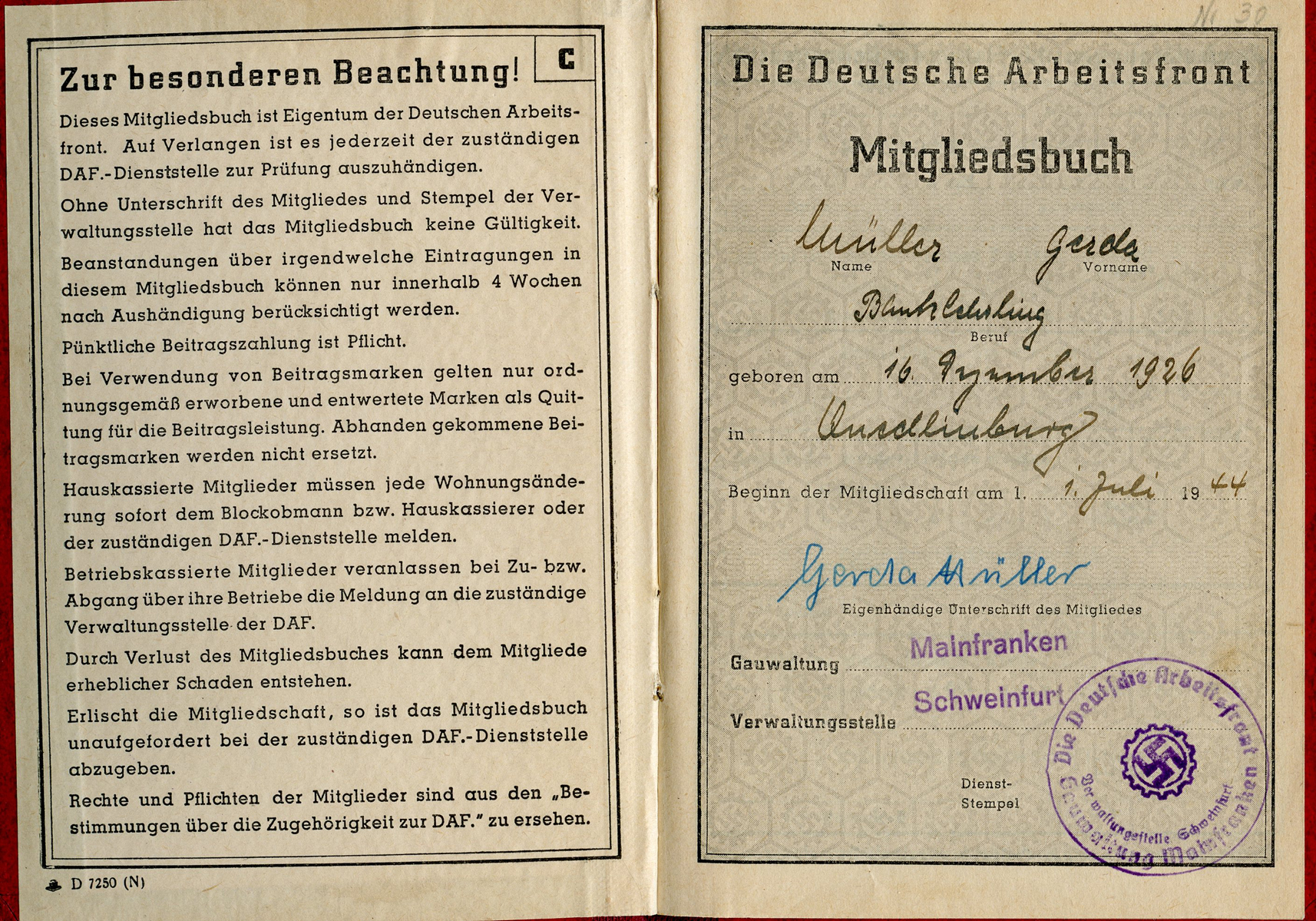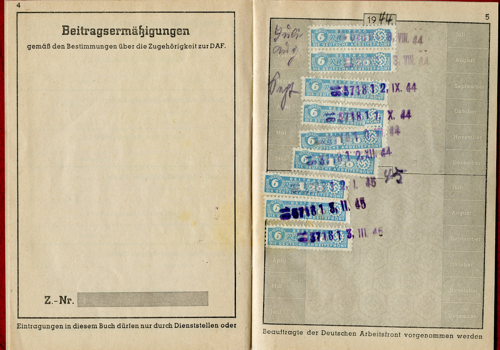 [Below: Here is a very late-war DAF book, note the grey DAF symbol. This was issued in July of 1944.]