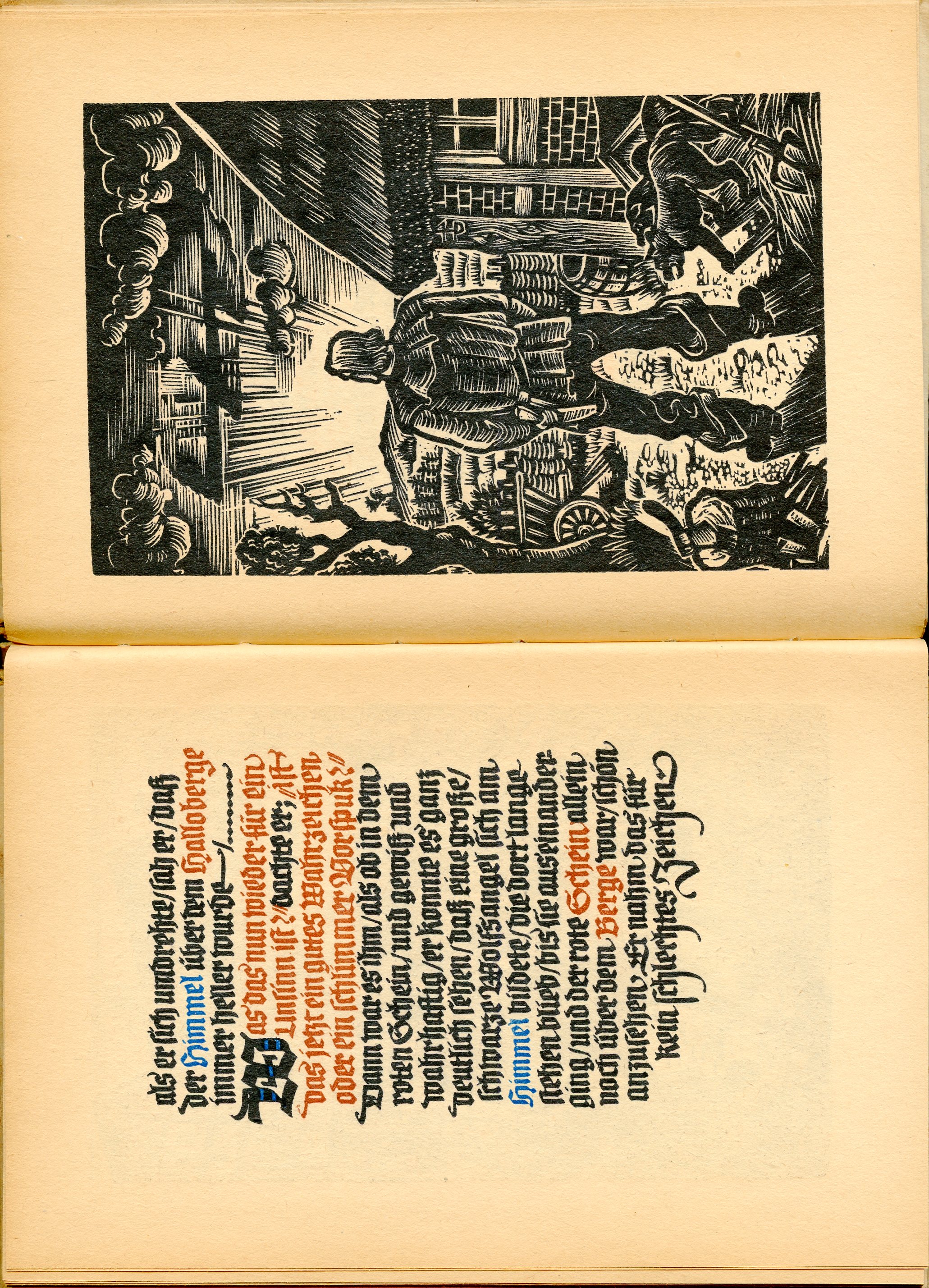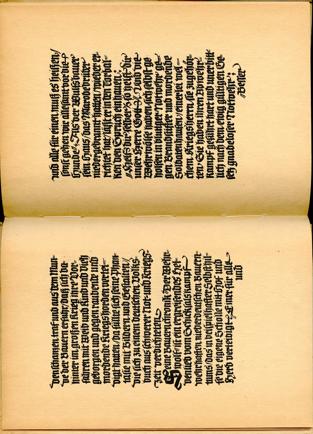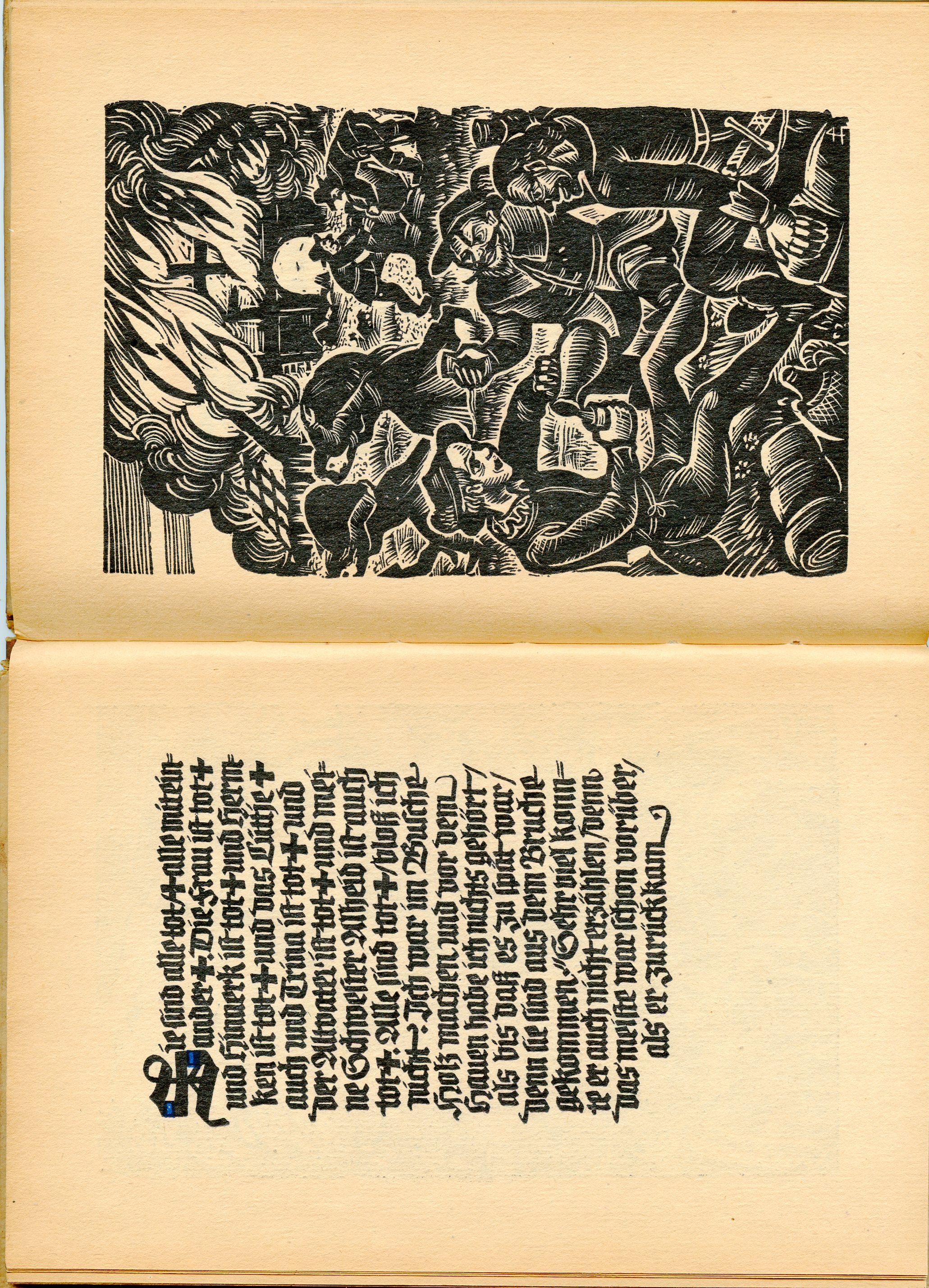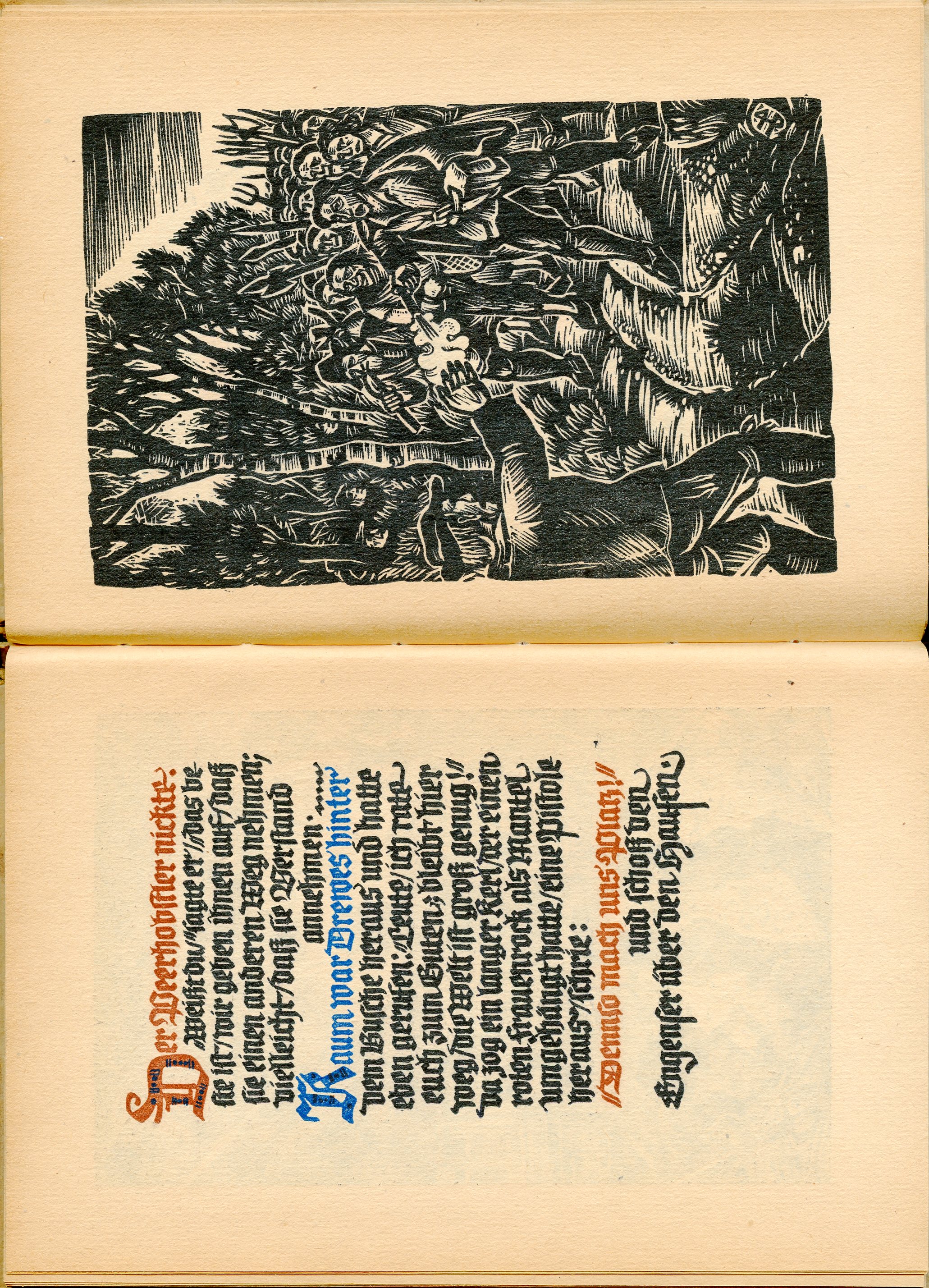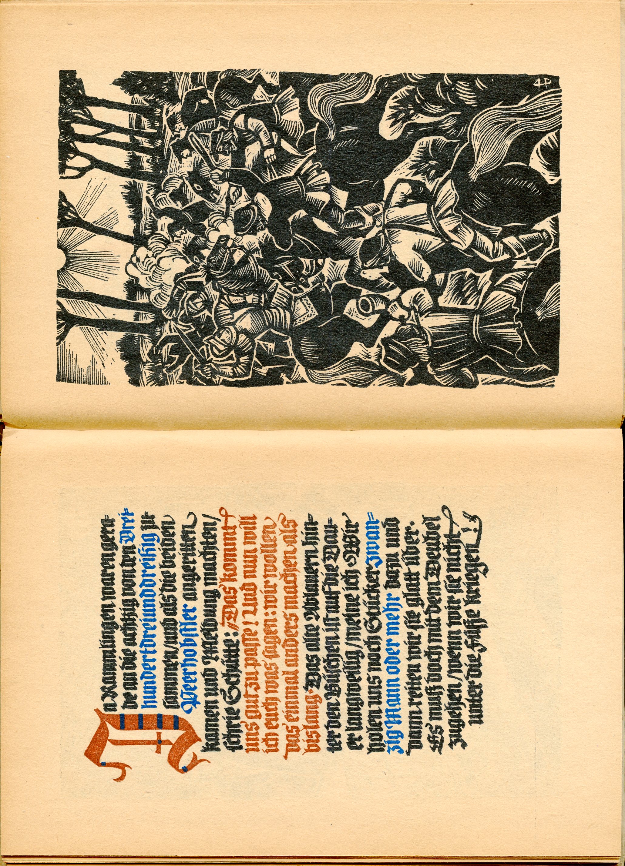 Here is the rare 1942 National Socialist edition of Der Wehrwolf, by Hermann Löns (1886-1971) 'Aus der Bauernchronik Der Wehrwolf von Hermann Löns - Eine Holzschnittfolge von Hans Pape' (From the peasant chronicle The Wehrwolf by Hermann Löns - A woodcut series by Hans Pape), 1942, Eugen Diederichs Verlag, Jena. Printed in Fraktur (German blackletter typeface or font), 44 pages, 5 x 7 inches. This edition features seventeen woodcuts by the superb German artist Hans Pape. Below you will find the PDF and very large JPG images in case the reader needs to use any of the images.