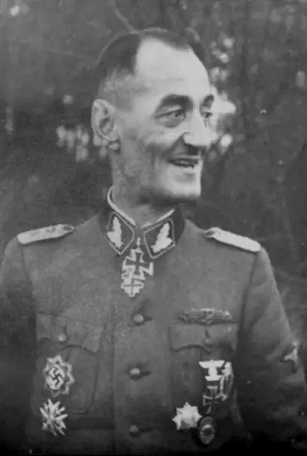 [Above: Oskar Dirlewanger after receiving the Slovak War Victory Cross, following the suppression of the communist Slovak National Uprising, October 31, 1944.]