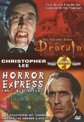 [Note: Starring Christopher Lee and Peter Cushing. Directed by Alan Gibson. The one in the middle was released as a budget title in one of those strange hard cases, kind of like a compact disc case. On the right is another budget title, this one paired with Horror Express, another Lee film.]