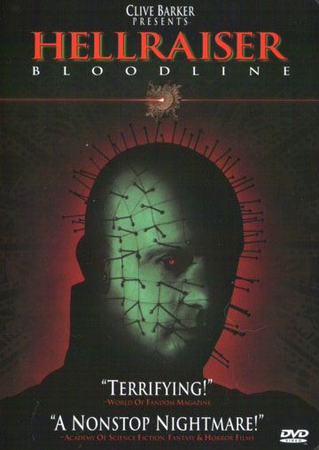 [Below: Hellraiser was a very unique idea and quite a worthy film. Below: The various Hellraiser spawn... Everything after part three started to go downhill. Even part three had some bad moments. Like the 'Cenobite' guy that shoots CDs! What the fuck were they thinking!? When part three was showing in movie theaters various Christian and censorship groups protested it because of some of its content. There is a scene where 'Pinhead' mocks Christ and destroys a church... Part three also features a Motorhead song 'Hellraiser', written by Lemmy and Ozzy.]
