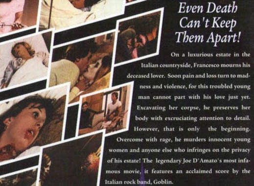 [Note: Directed by Joe D'Amato, an Italian directed who is famous for doing many porn films and even dipping his hands into a few 'Emanuelle' titles. This film is known as one of his greats, which he himself considered his finest work. He died in 1999 of a heart attack.]
