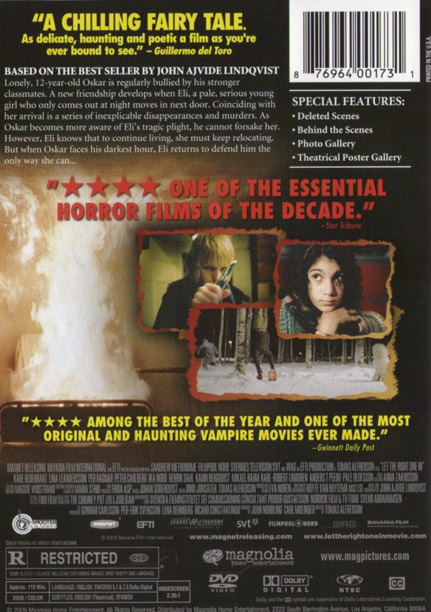 [Note: Directed by Tomas Alfredson. This Swedish film is very well-done and unique. The premise of a child vampire worked very well. Great acting, realistic gore and an overall strange atmosphere make this a great film.]