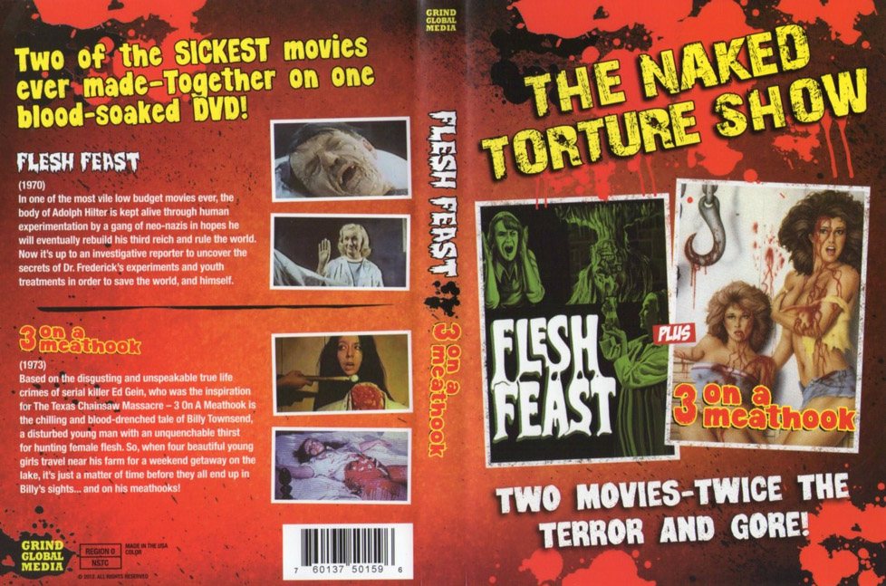 [Note: This first film, Flesh Feast is total garbage. The plot matches the horrible film quality, worse than VHS. 3 On A Meathook however was a cool film I had never heard of.]