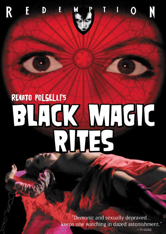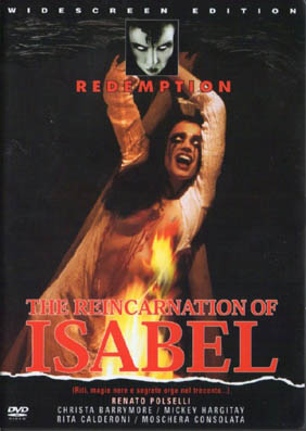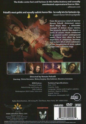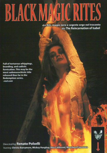 [Below: 'The Reincarnation of Isabel' shown amongst boxset above, but released on its own and under the title 'Black Magic Rites'. This DVD was released by Redemption. DVD front/back.]