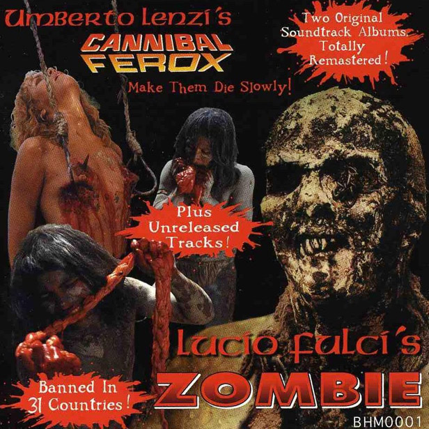 [Above: Soundtrack compact disc of Cannibal Ferox and Zombie]