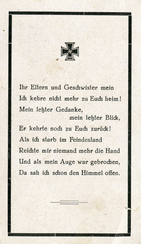'Wer mutig für sein Vaterland gefallen / der baut sich selbst ein ewig monument.'