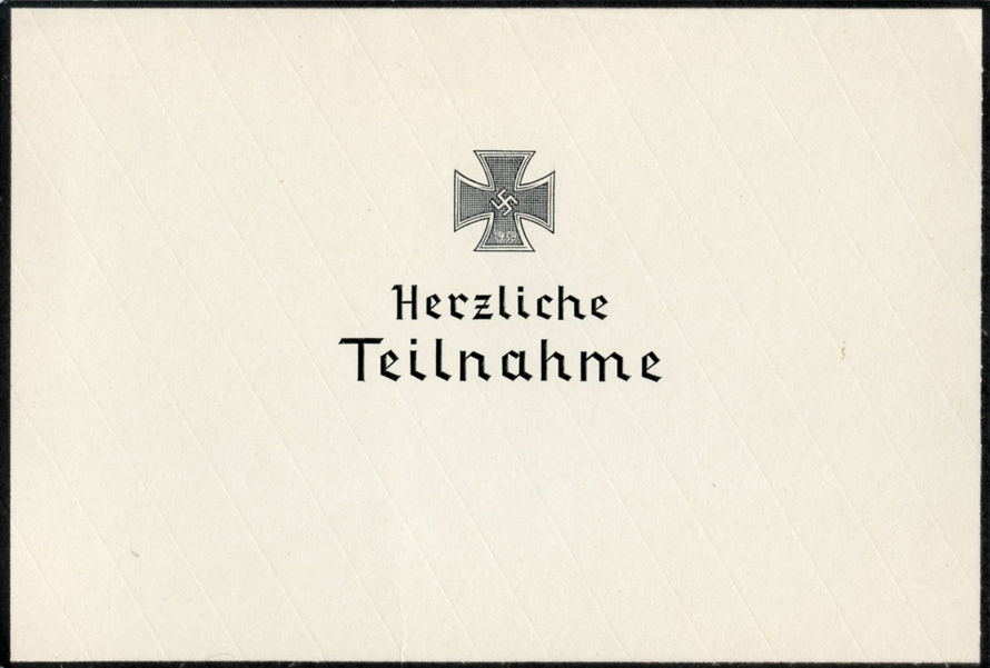 [Above: 'Herzliche Teilnahme' (Warm Sympathy). The black border of this postcard signifies mourning. It can be found on death cards and other material as well.]