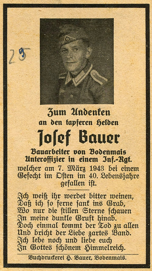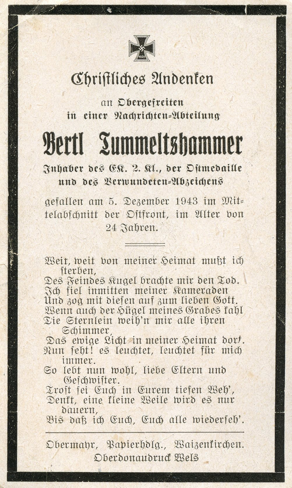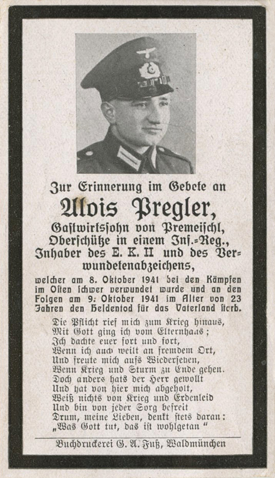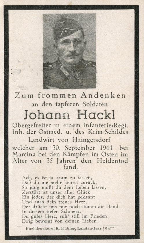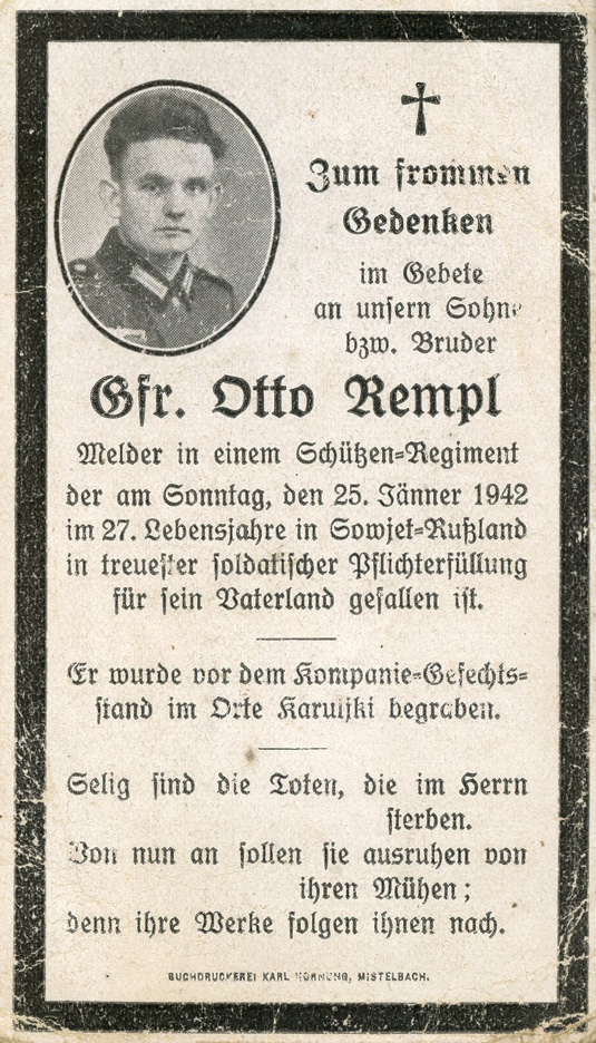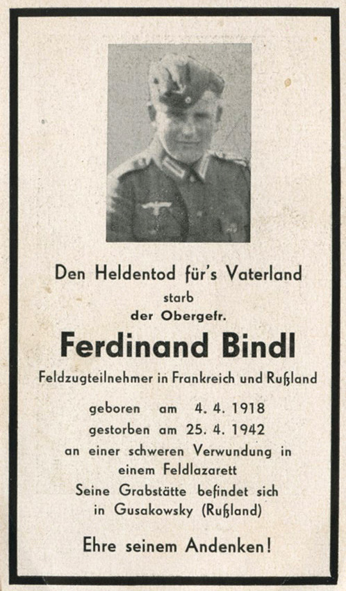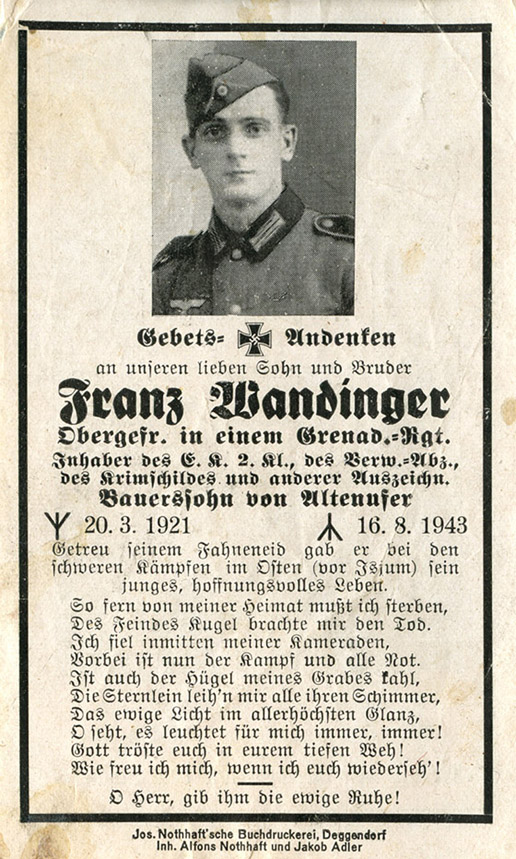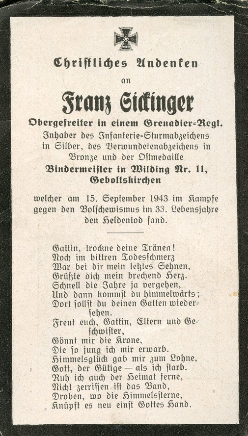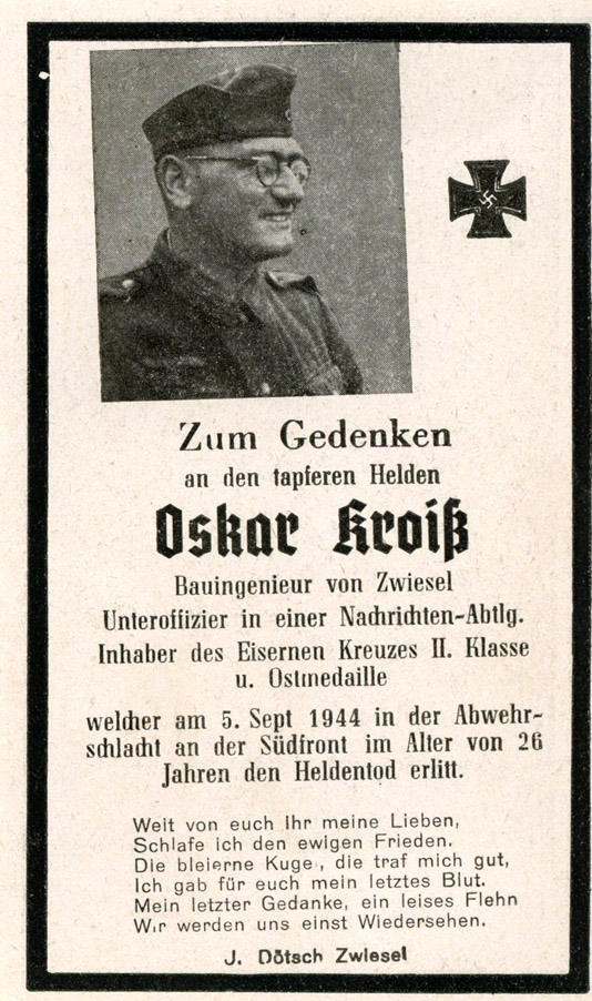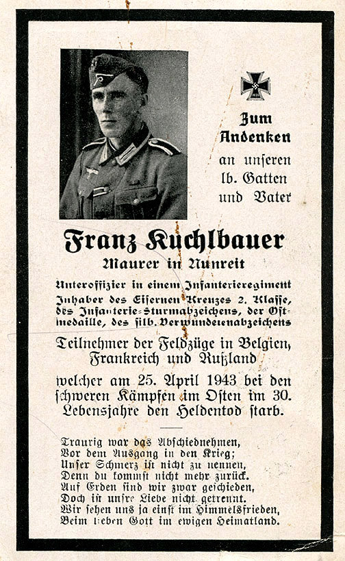 [Above: Johann Kaindl served in France, Yugoslavia and Russia, he earned the Iron Cross 2nd Class and the Infantry Assault Badge. He was only 22 years old.]