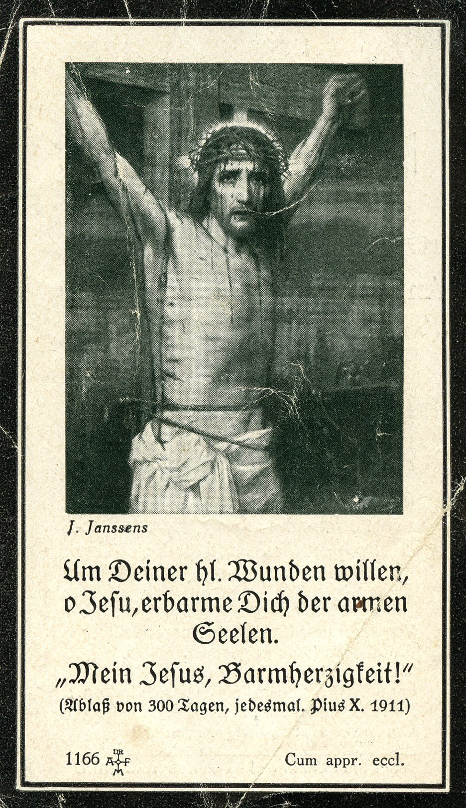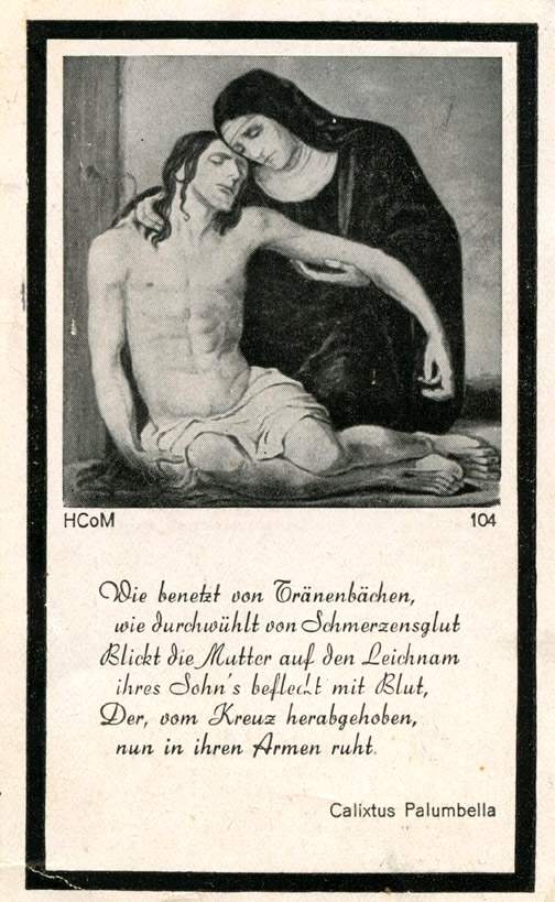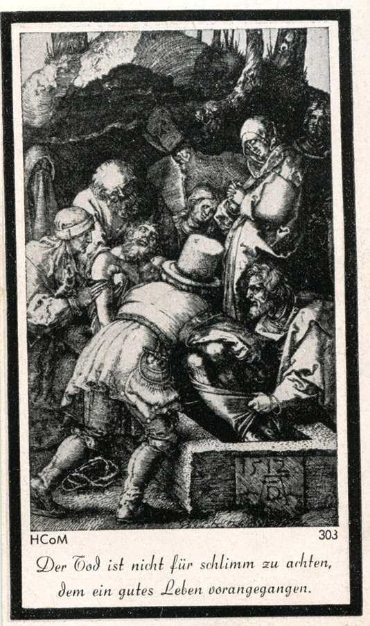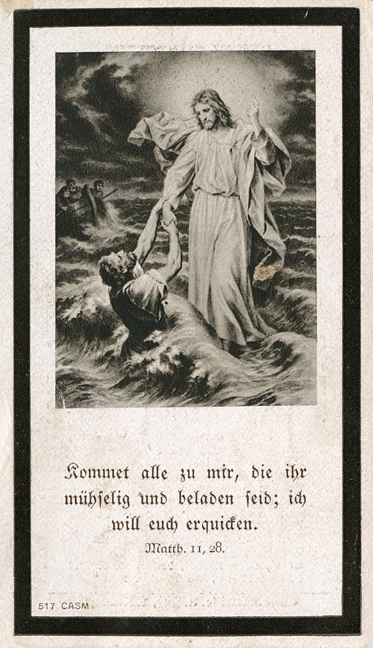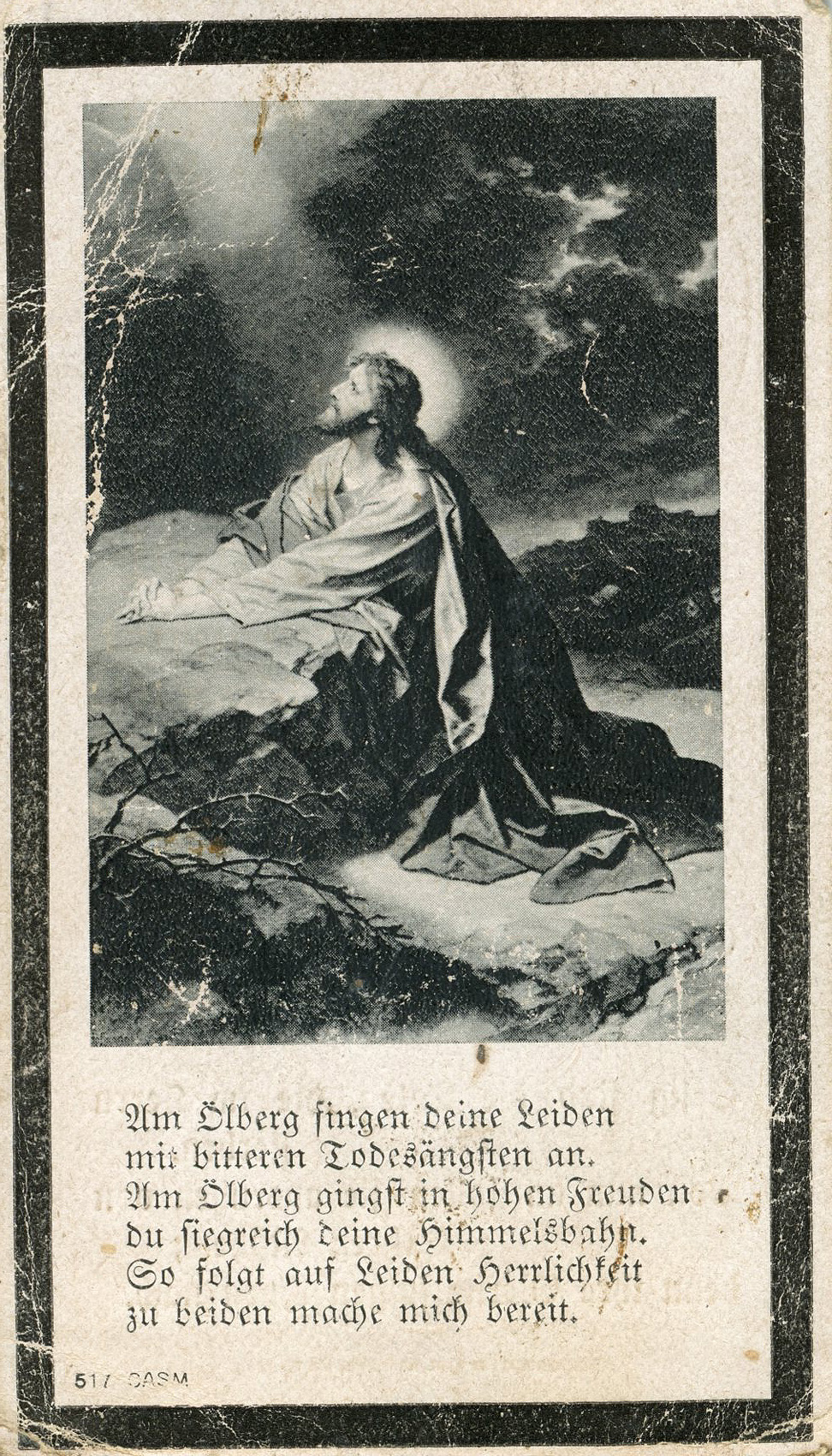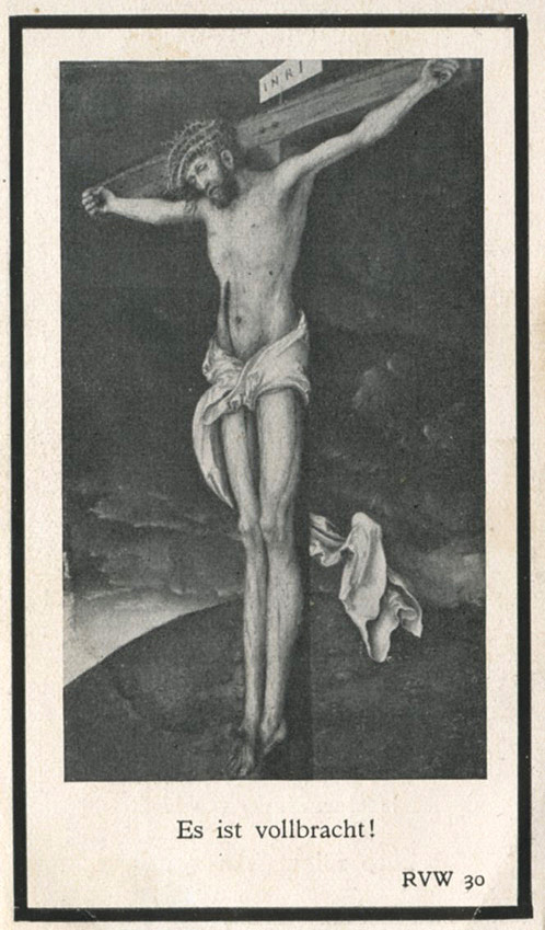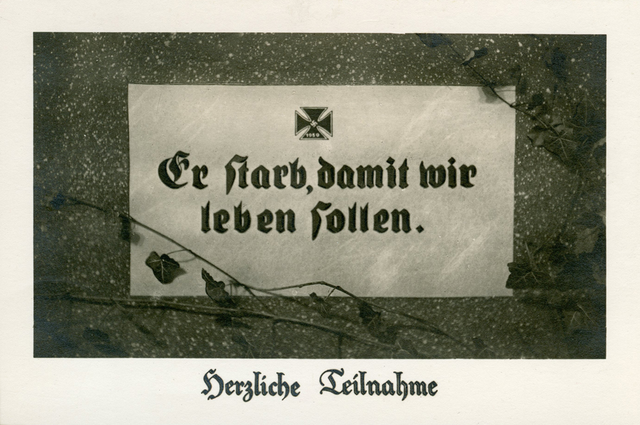 [Above: Another mourning card, this says: 'Er Starb, damit wir leben sollen' (He died so that we might live).]