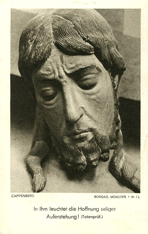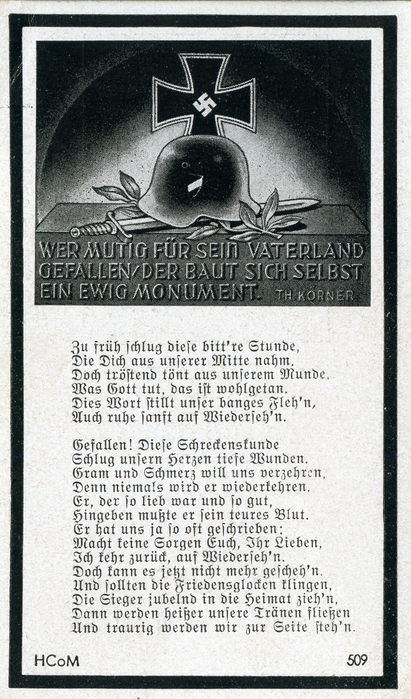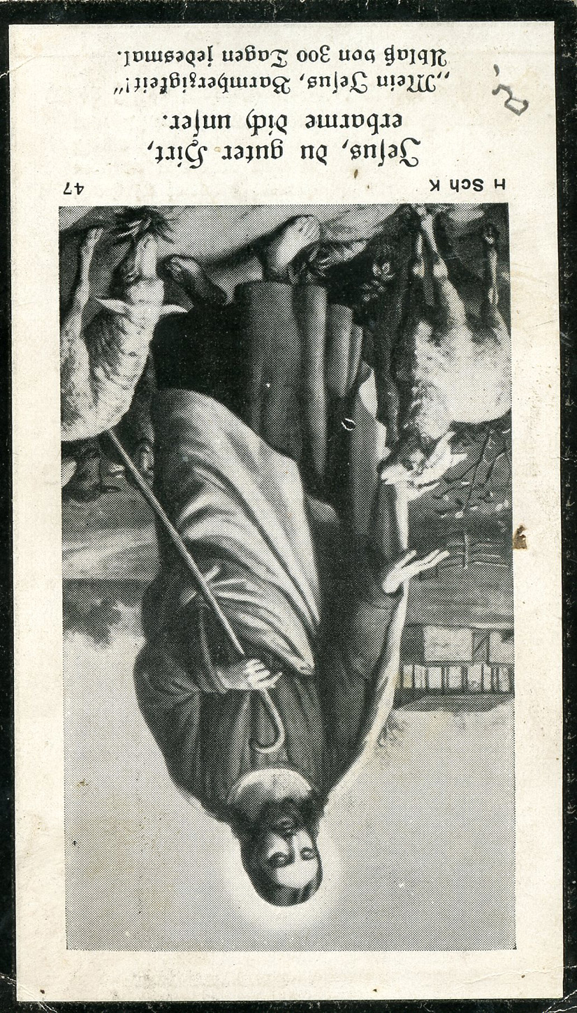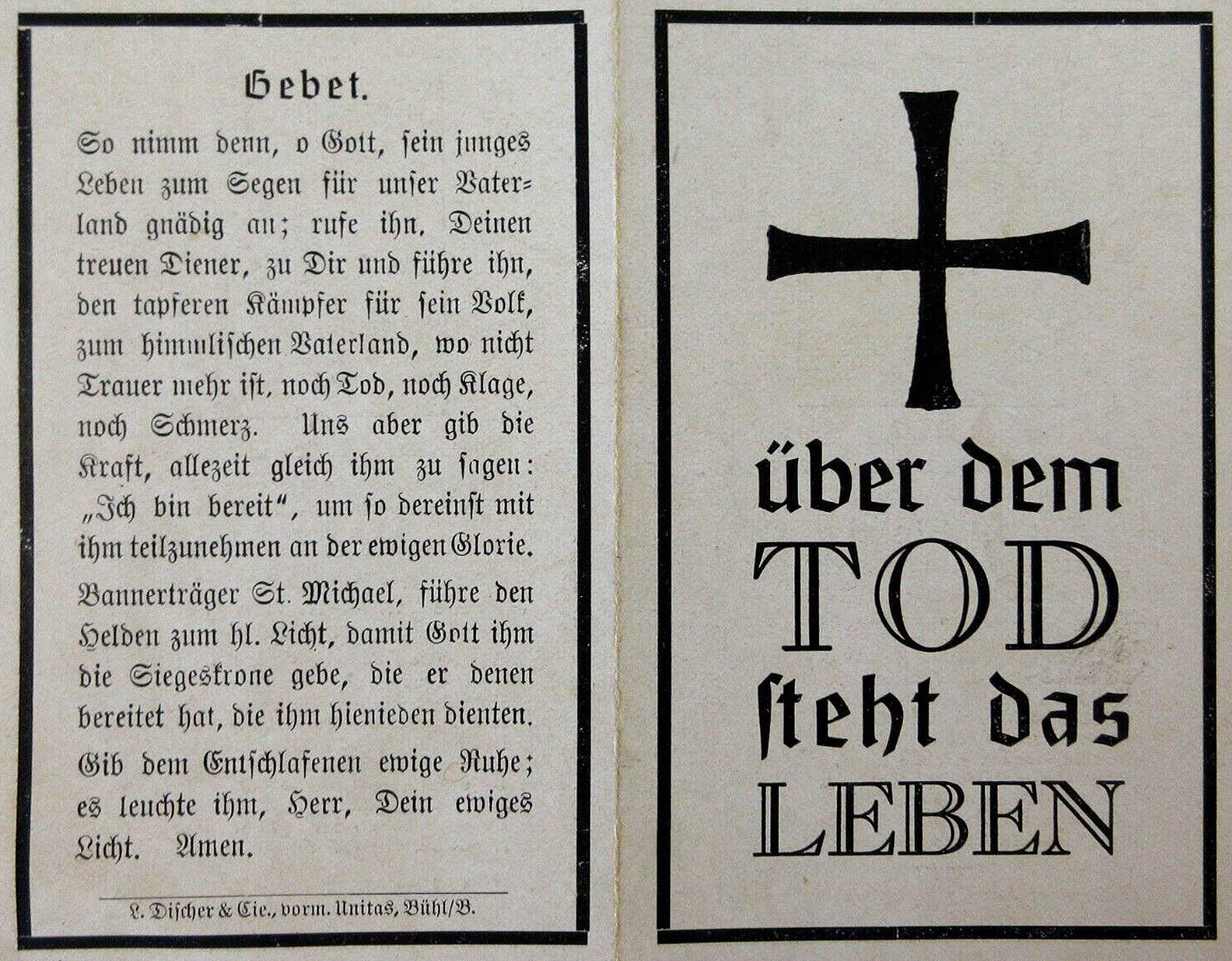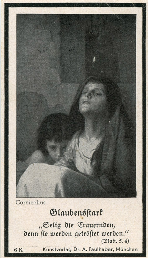 [Above: Another mourning card, this says: 'Er Starb, damit wir leben sollen' (He died so that we might live).]