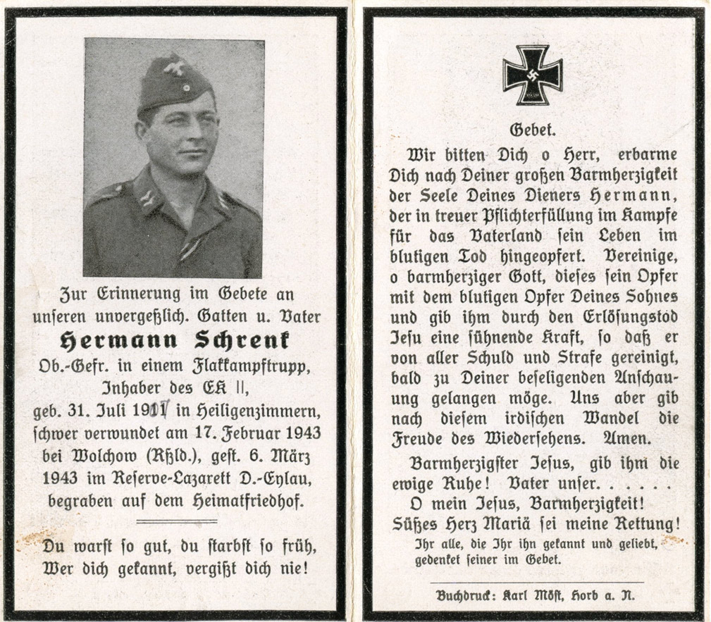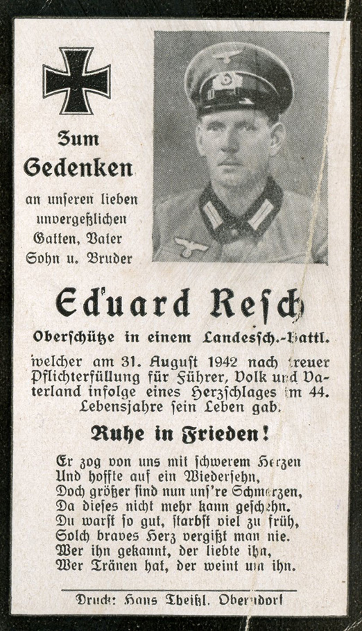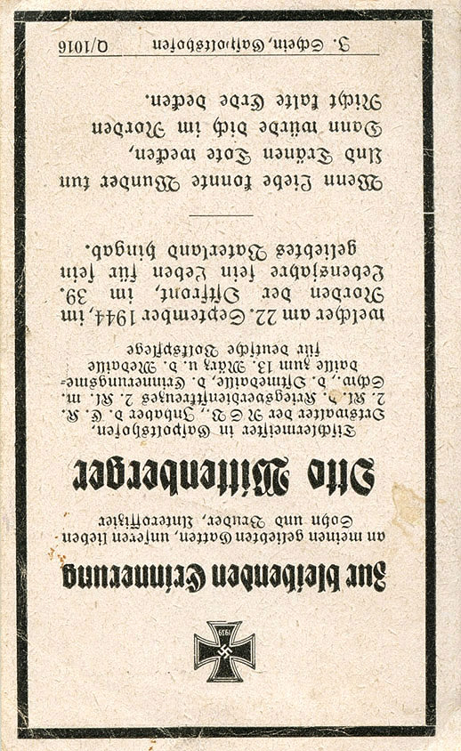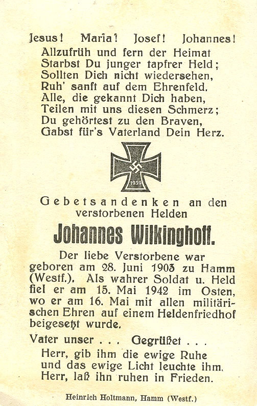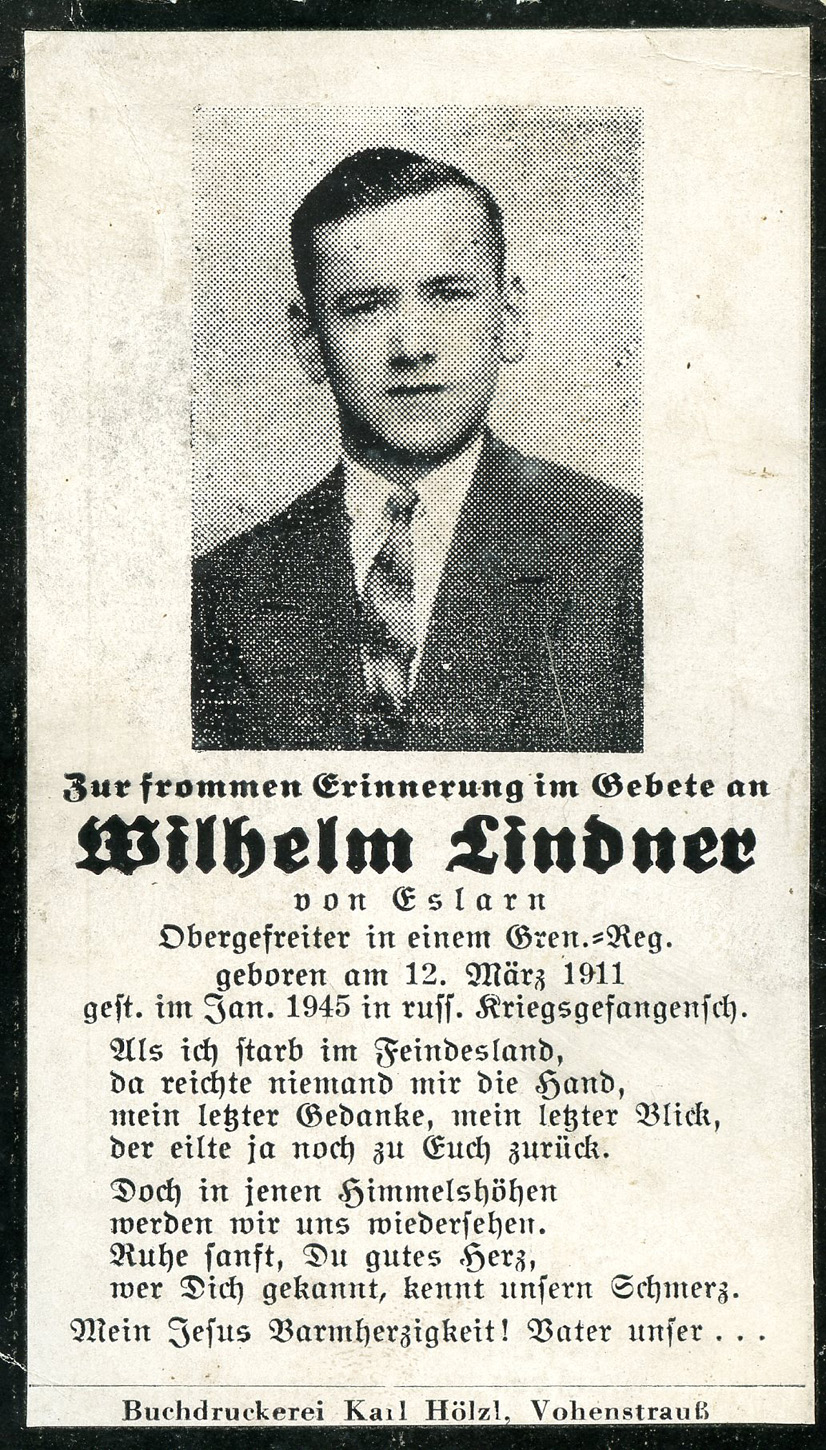 [Above: Wilhelm Lindner, died in a Russian prisoner-of-war camp, like so many others. He was 33 years old. They don't know exactly when he died, just 'January'. Here are the sad words on the left card...