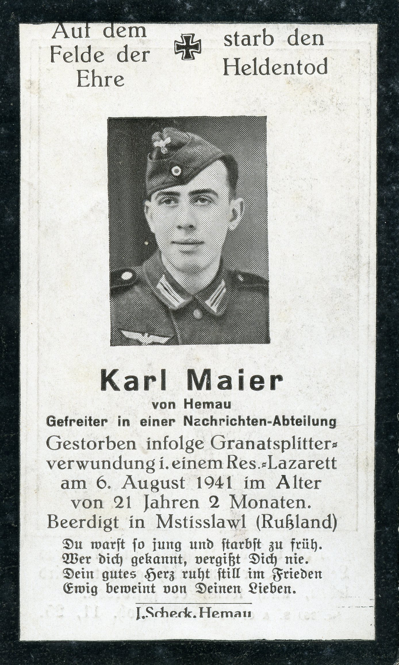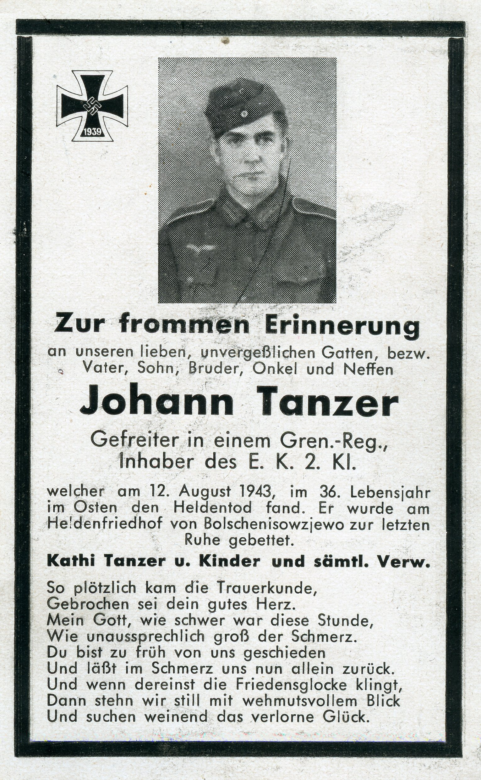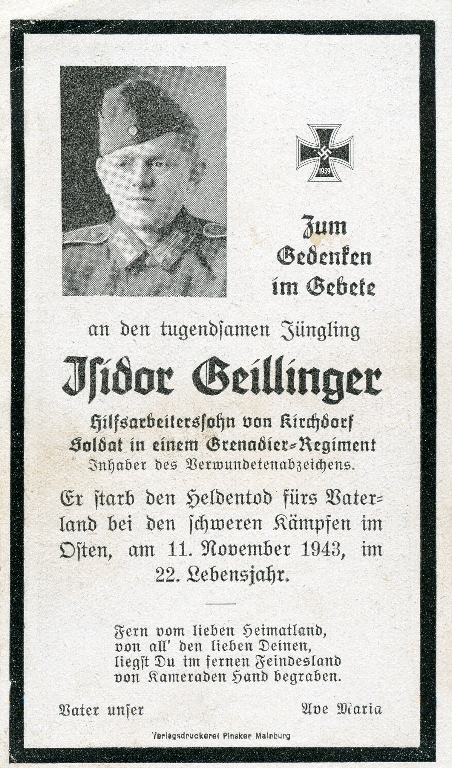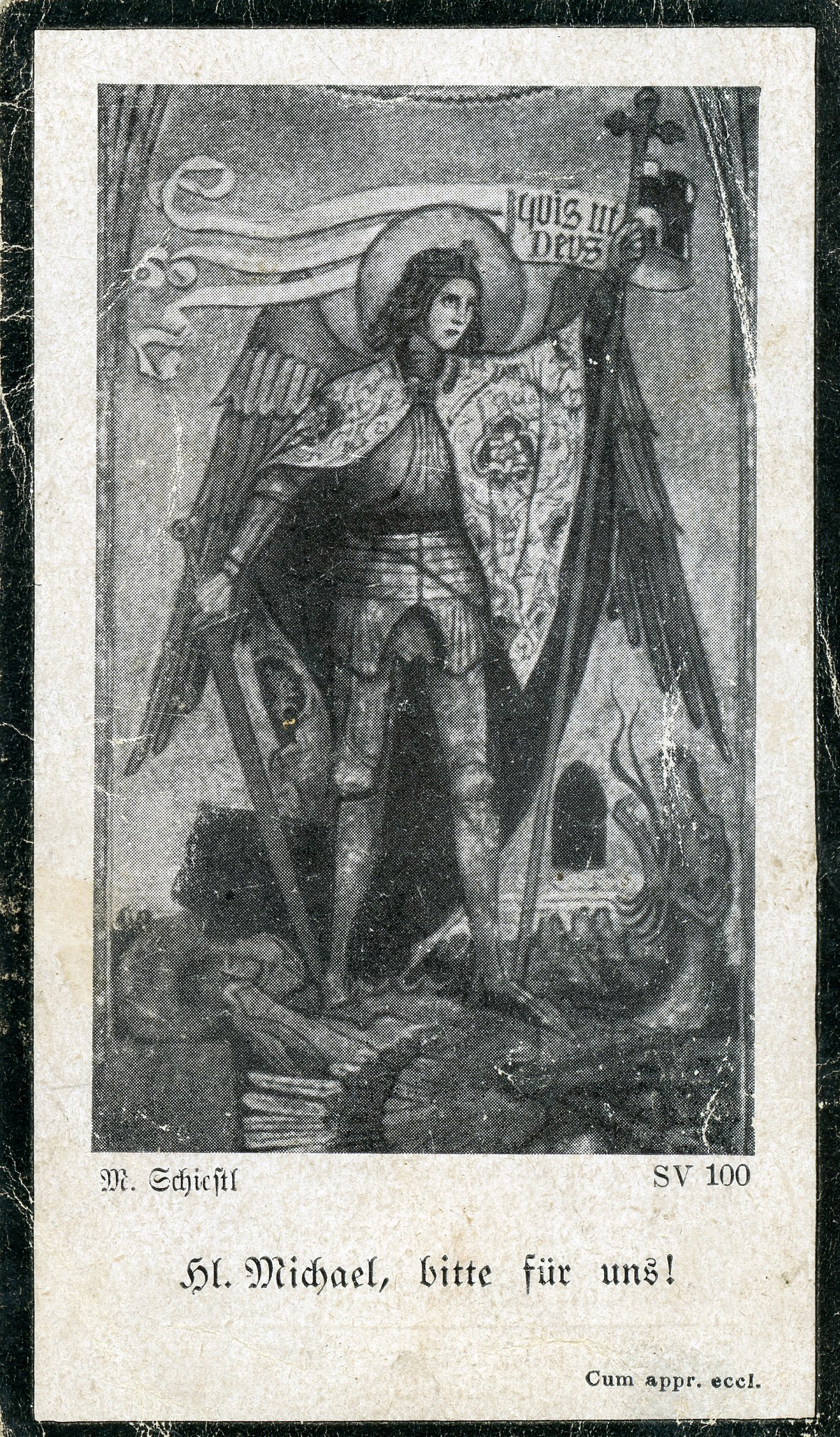 [Above: Another mourning card, this says: 'Er Starb, damit wir leben sollen' (He died so that we might live).]