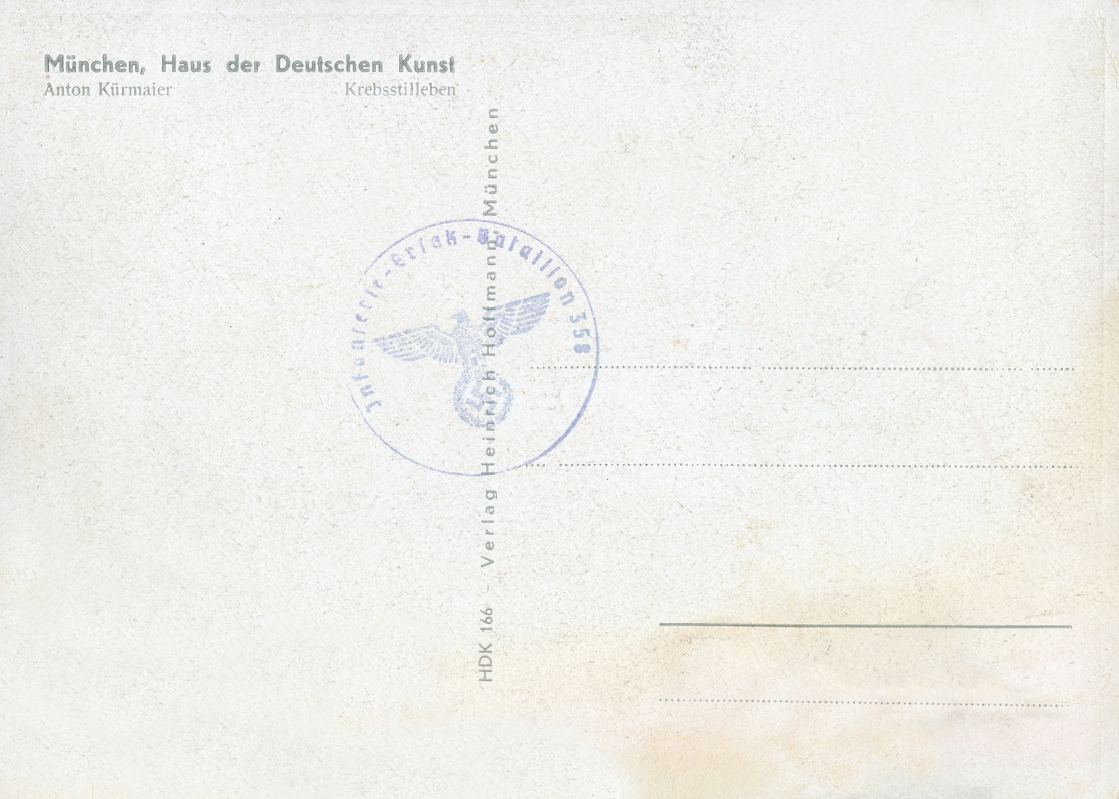 [Below: Postcard reverse - note the Feldpost unit battalion stamp.]