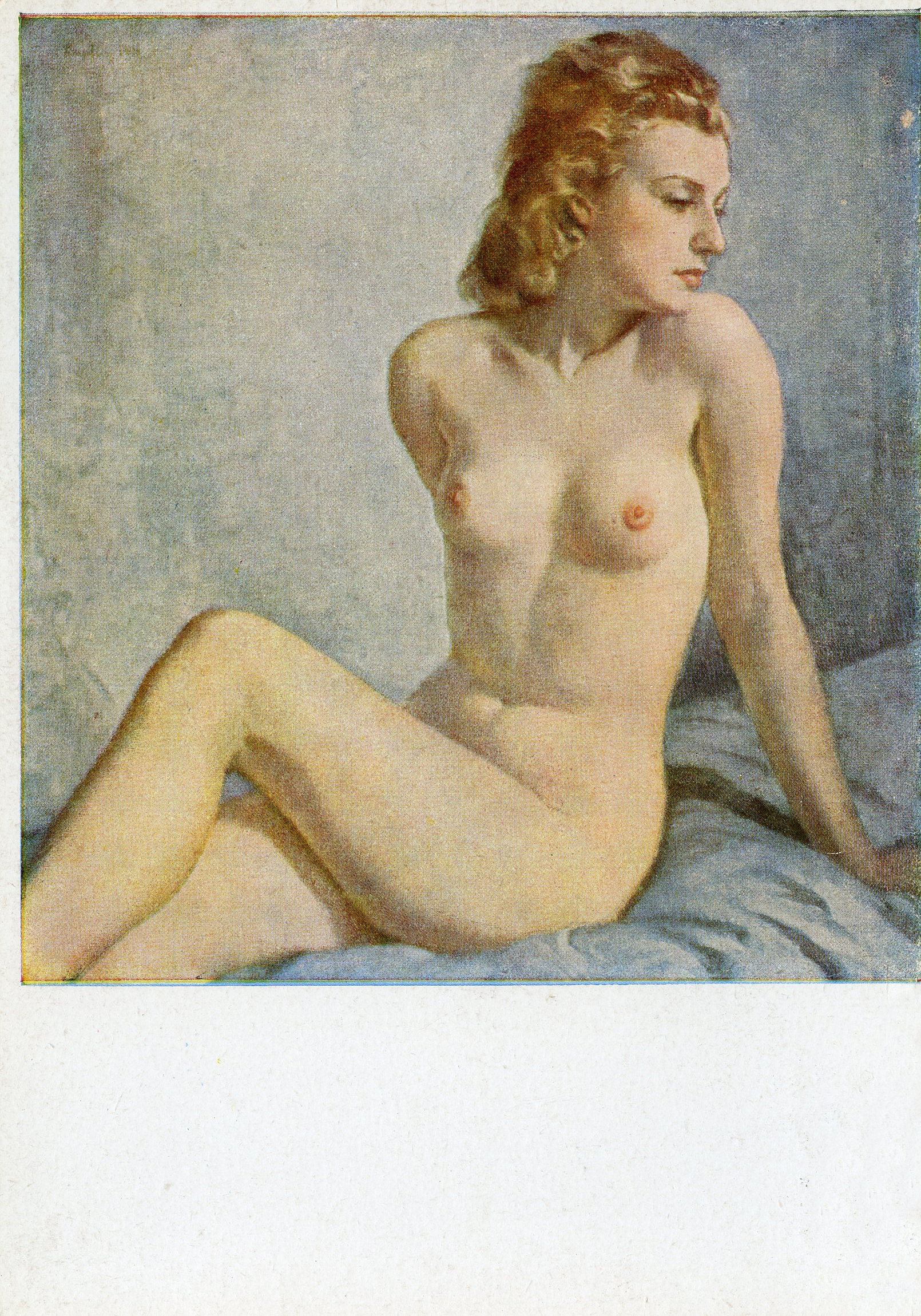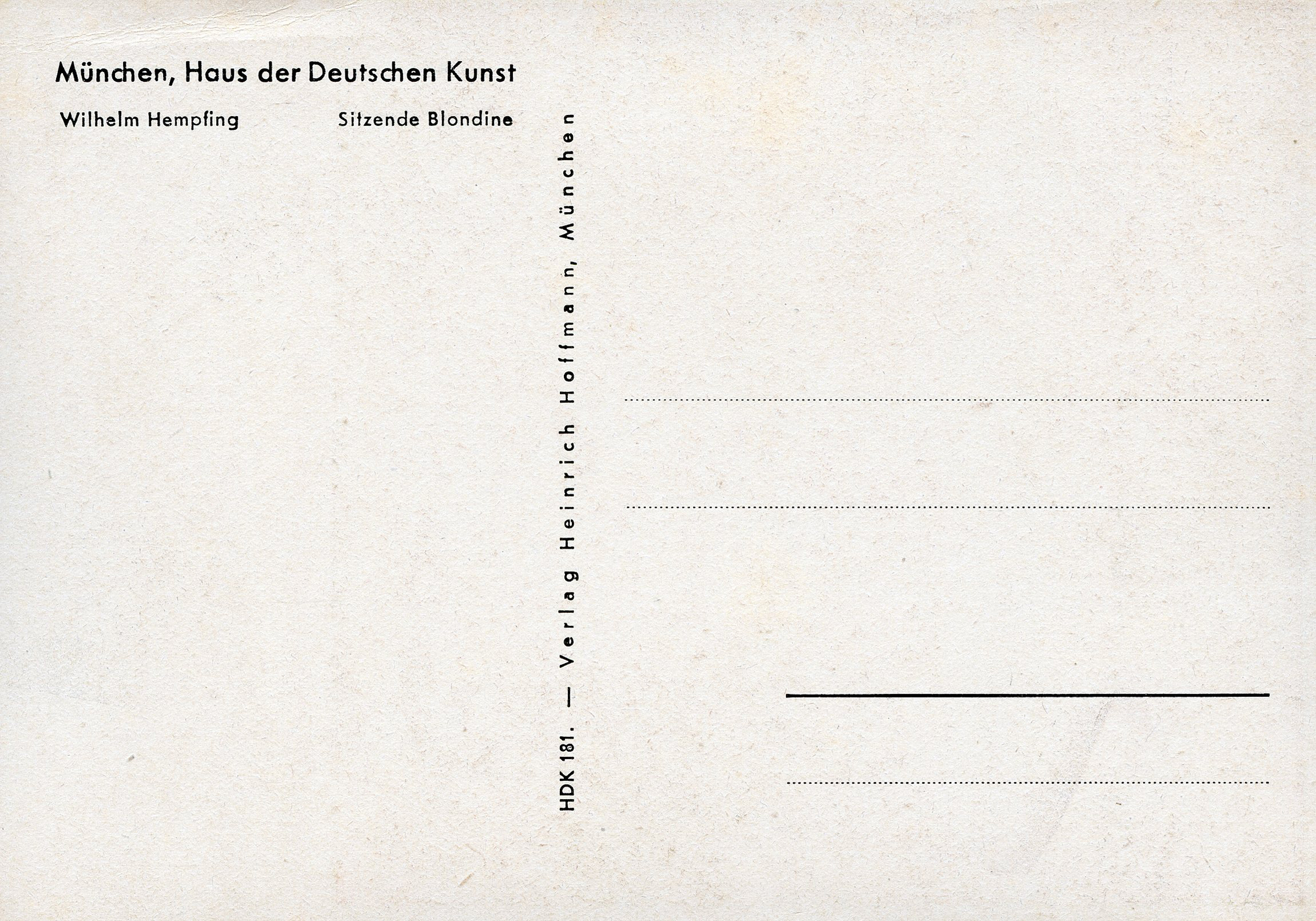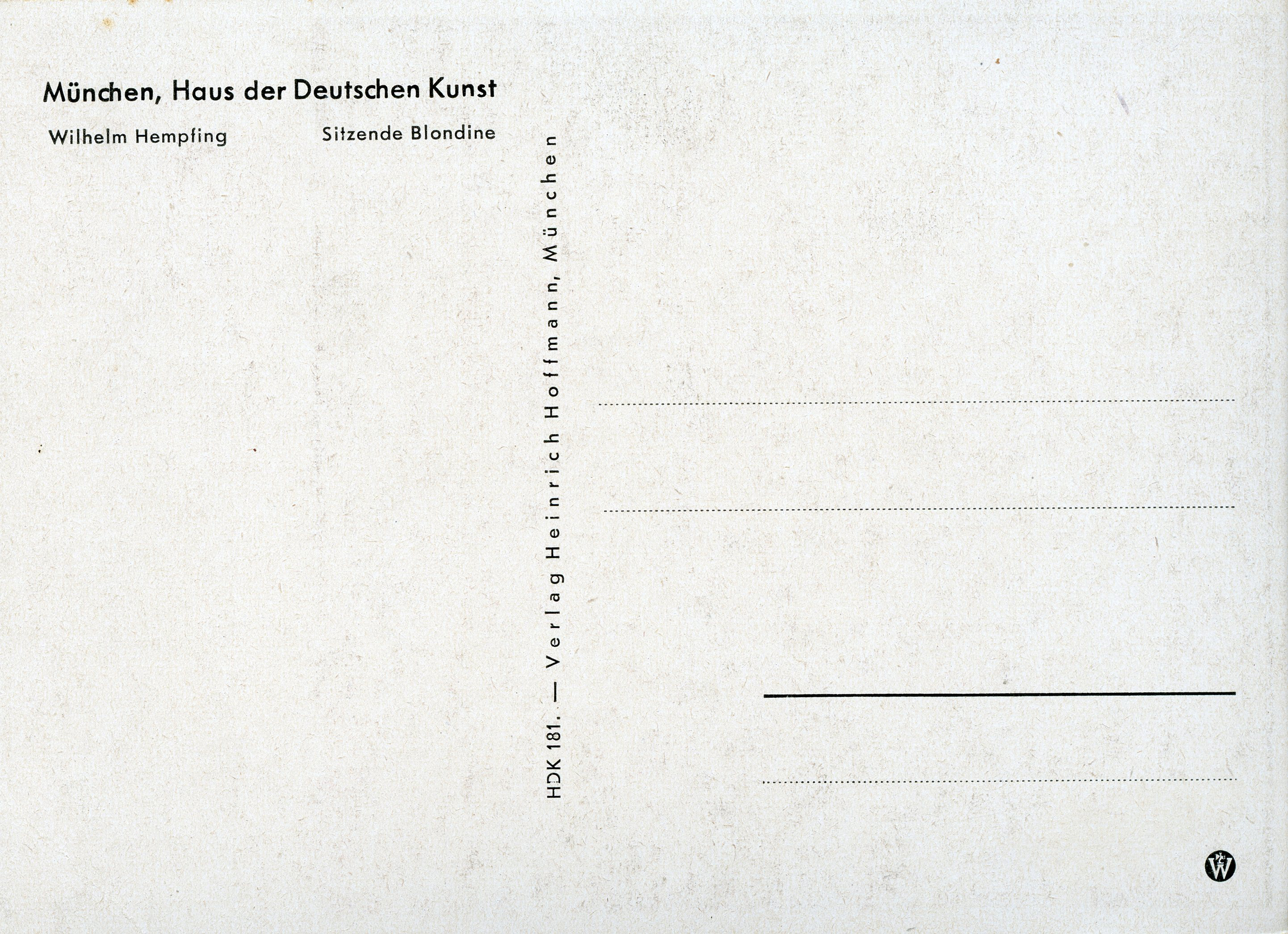 [Below: Postcard variation - Maker mark/different color/missing right frame. Front.]