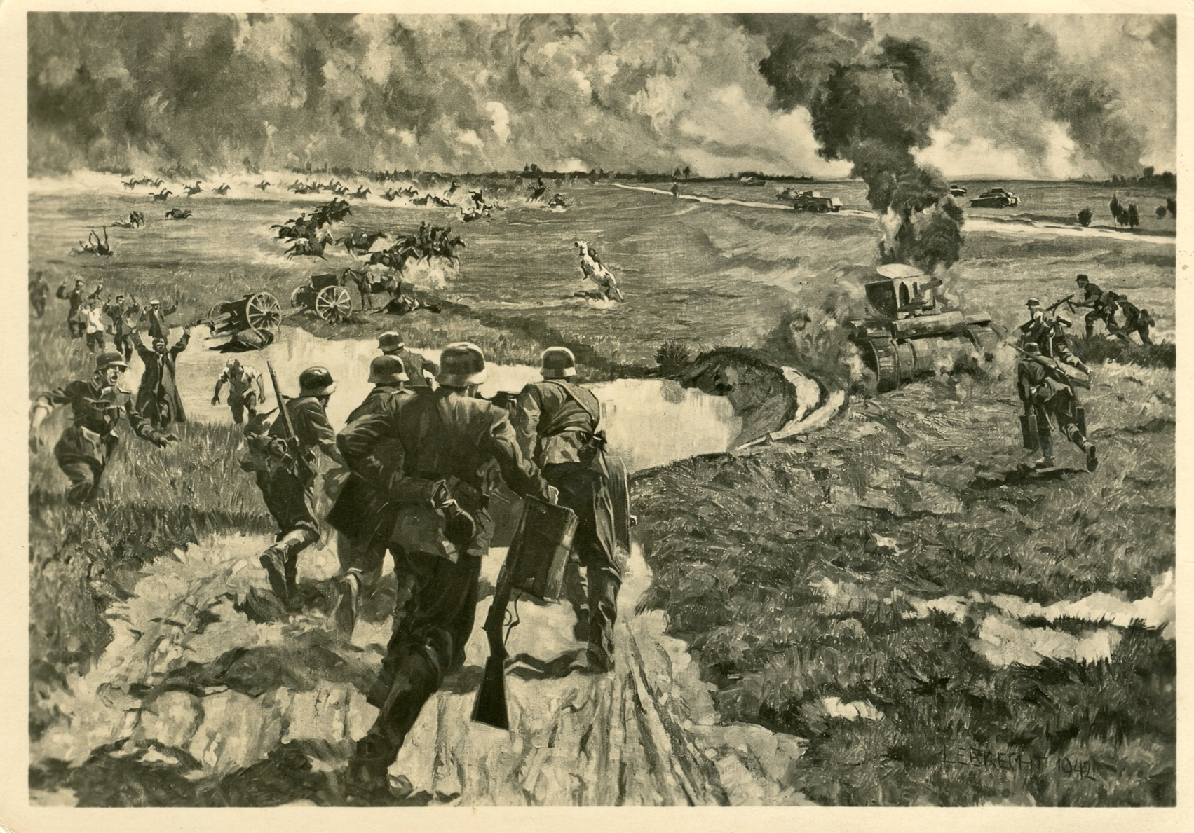 [Above: This was done by the artist Alfred Roloff, from Berlin, entitled 'Flüchtende' (Refugees).]
