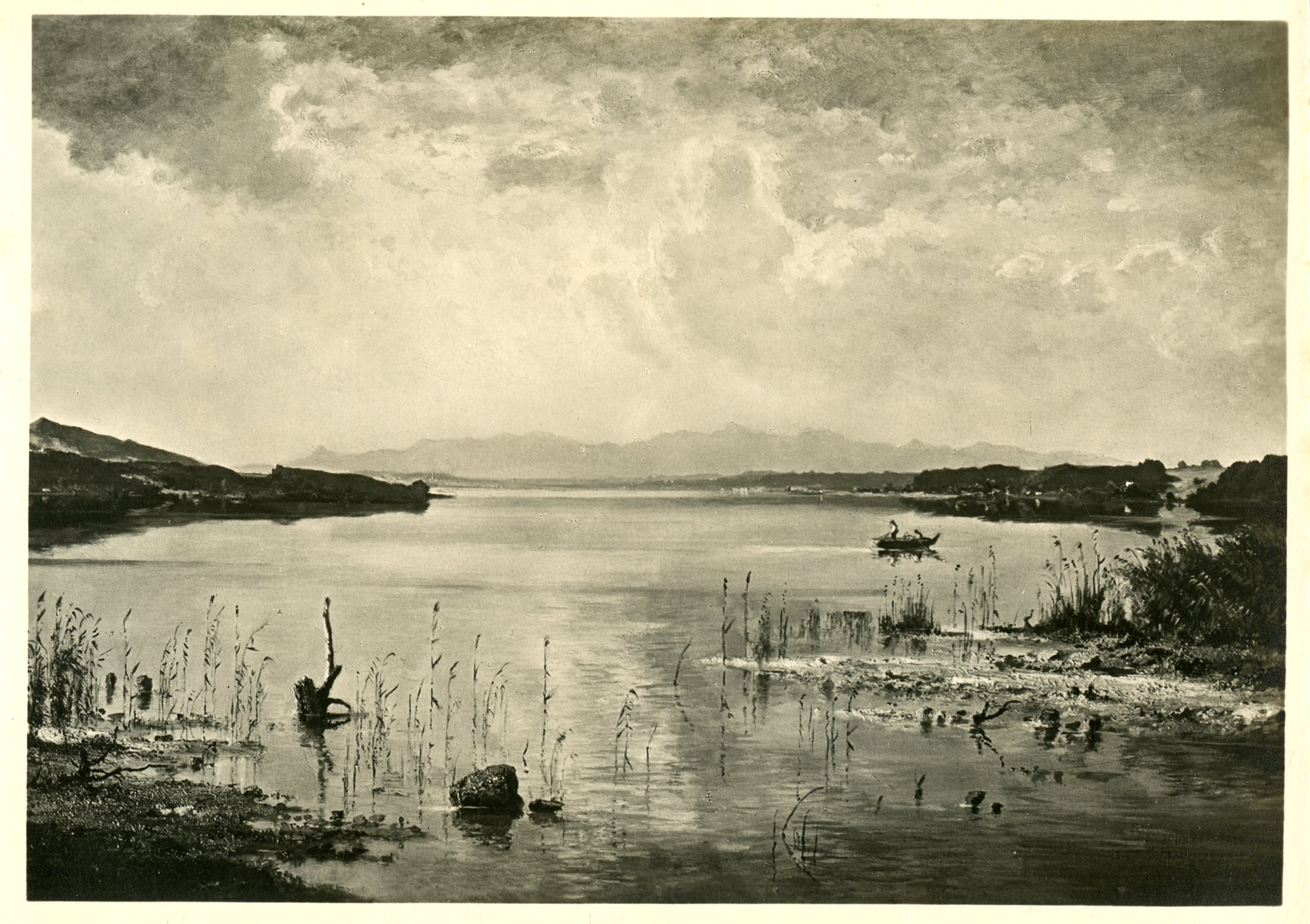 [Above: This was done by the artist Fritz Hallberg-Krauss, entitled 'Frühmorgen am Simssee' (Early Morning at Lake Simssee).]
