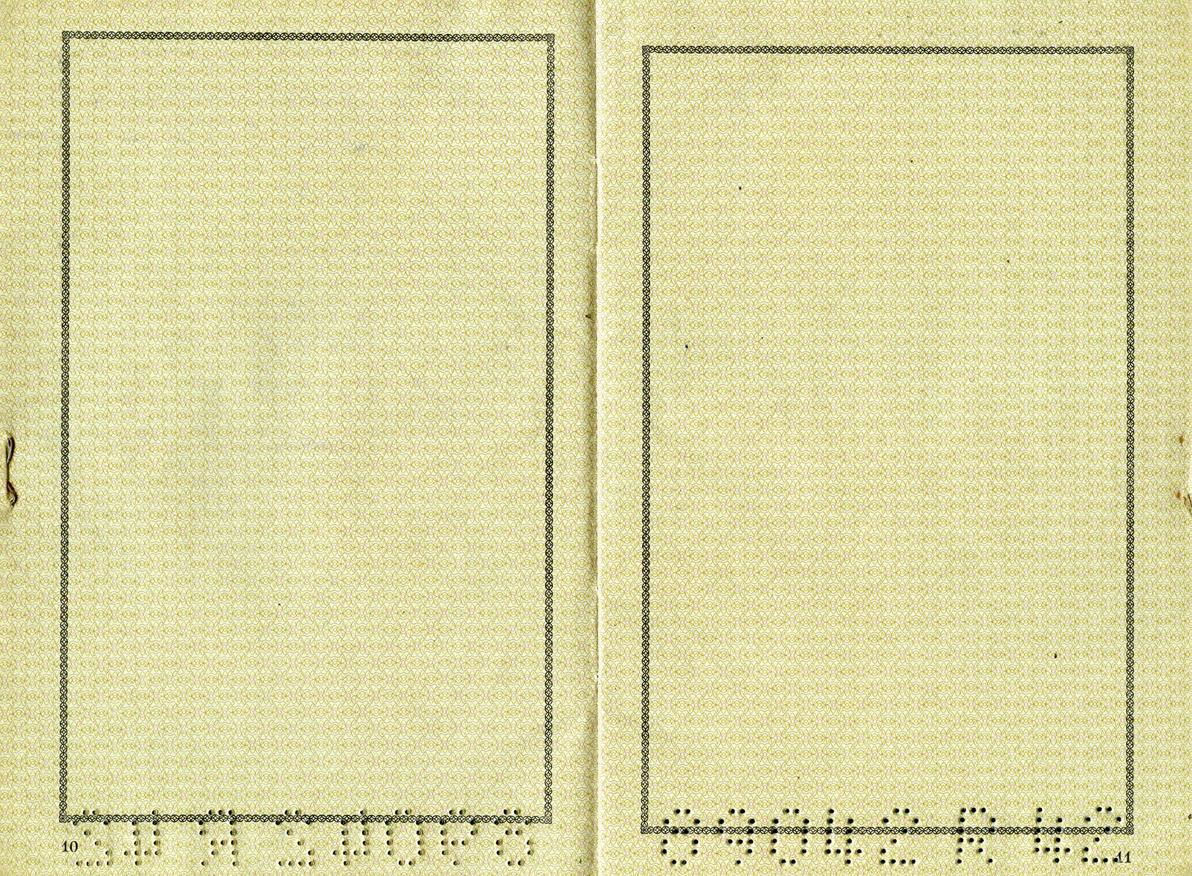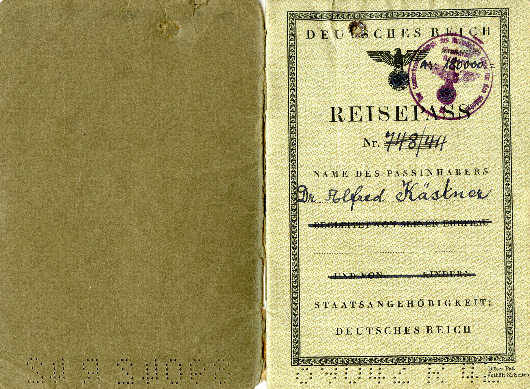 [Below: This is a Third Reich 'Reisepass', or passport. You can see that this has been 'de-Nazified' after the war, per Allied order, by having the swastika scribbled out.]