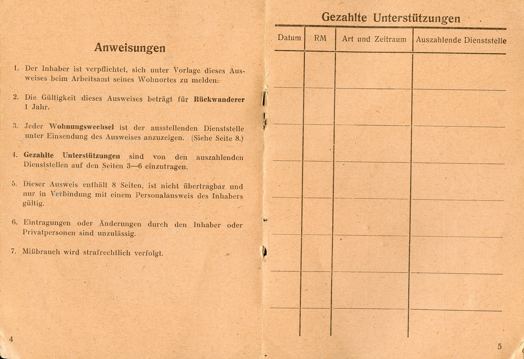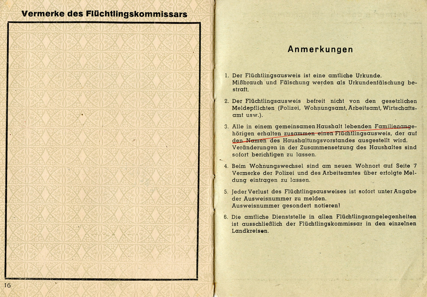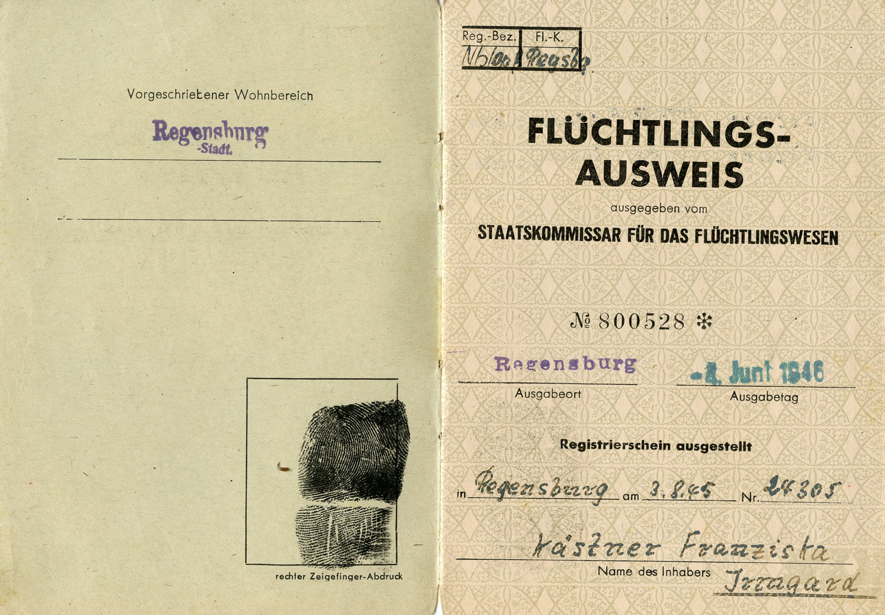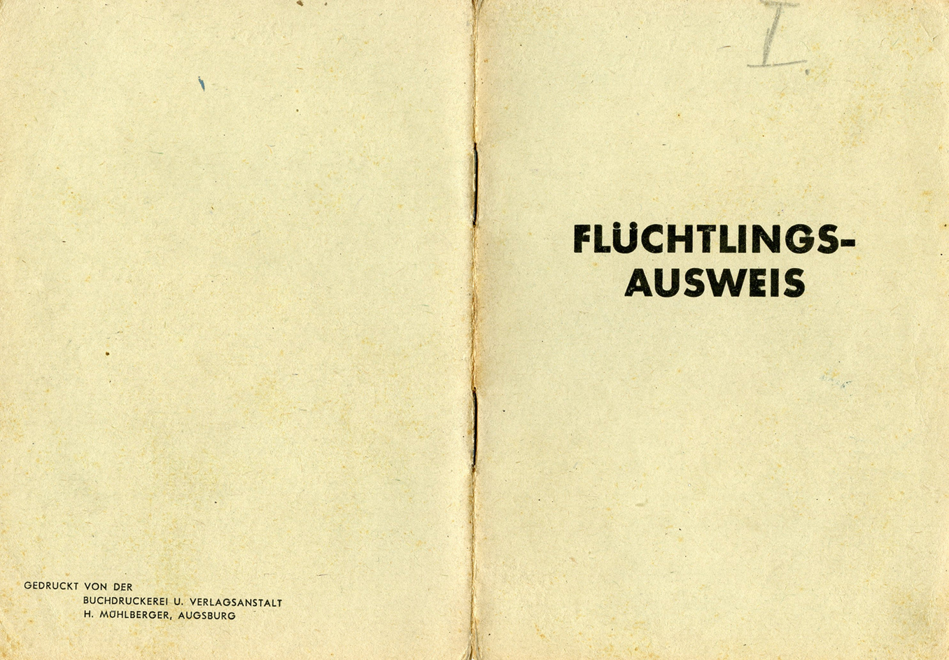 [Below: This is a 'Flüchtlings-Ausweis' (Refugee ID Card). Refugee? Hmm... Let's look inside.]