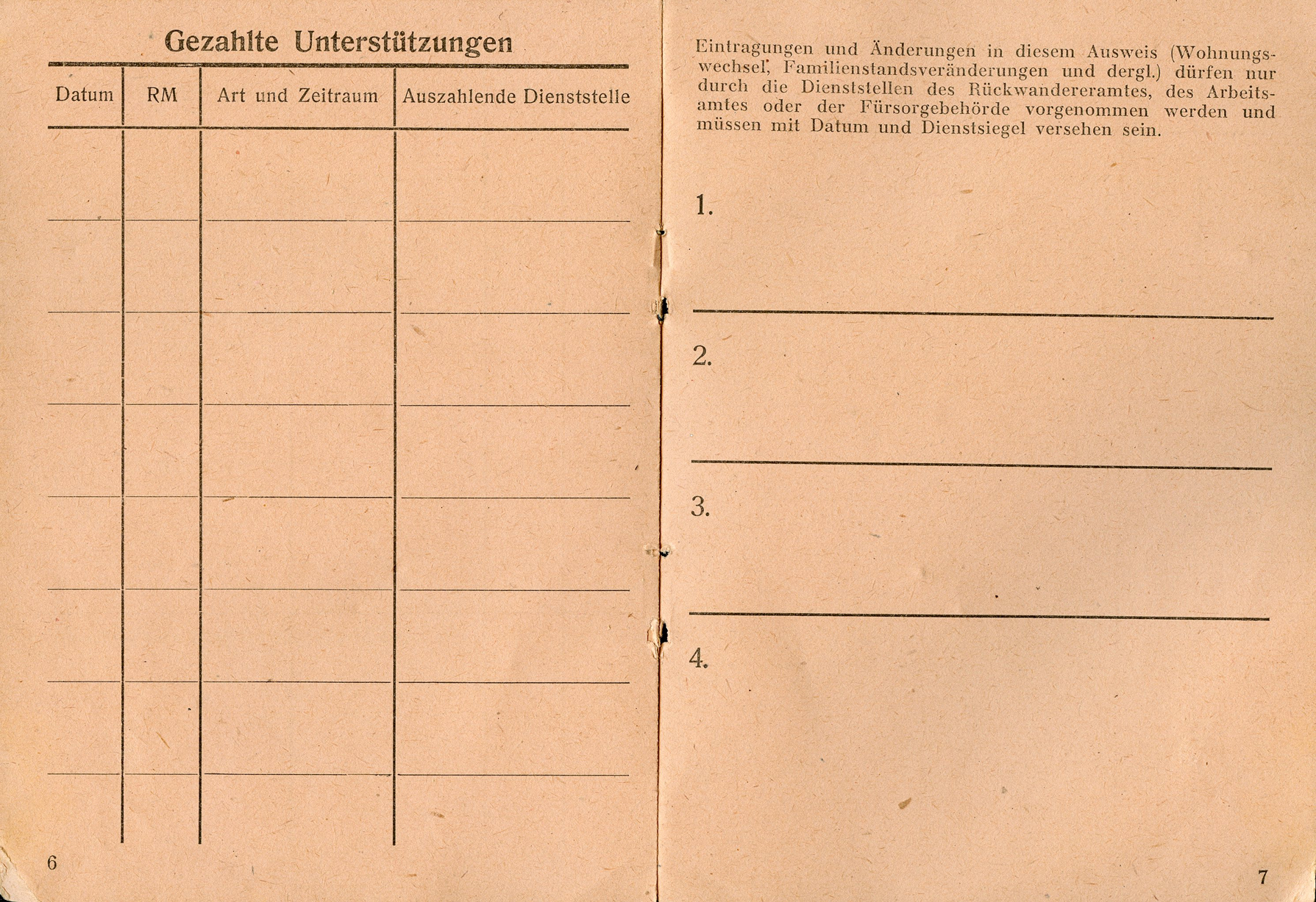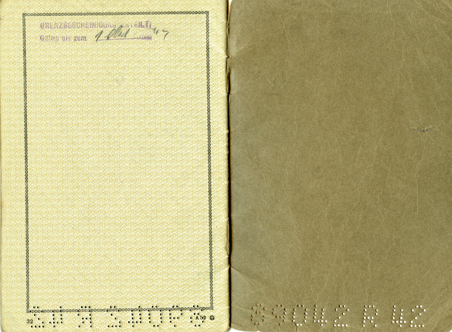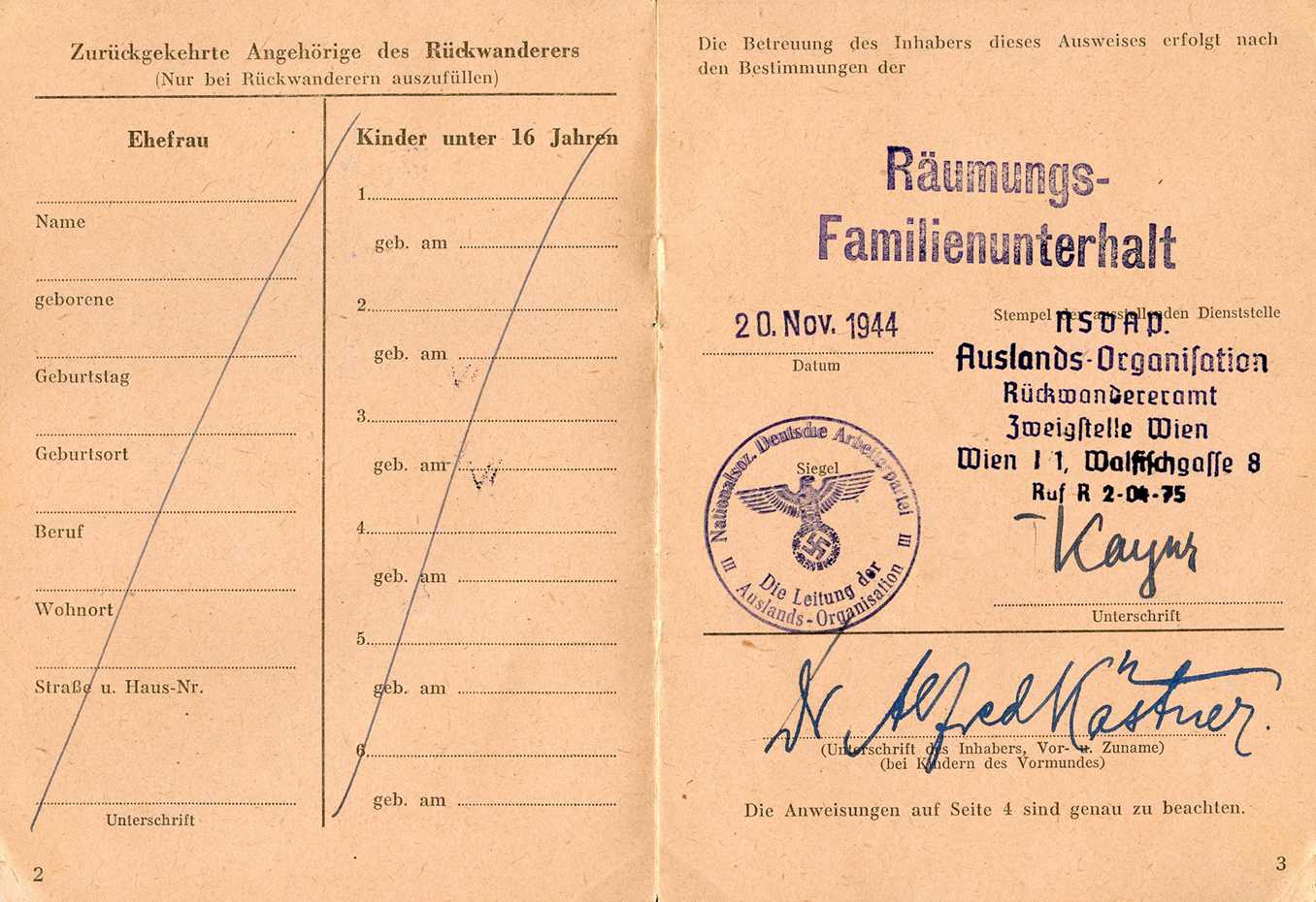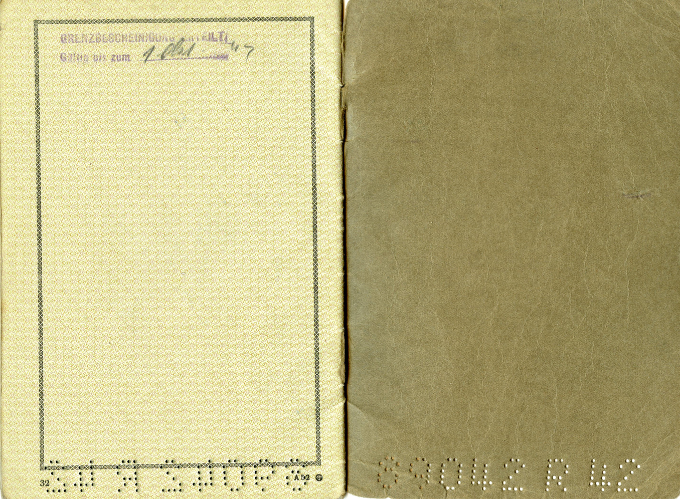 [Below: This is a 'Flüchtlings-Ausweis' (Refugee ID Card). Refugee? Hmm... Let's look inside.]