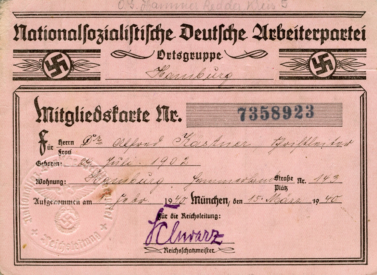 Meet Dr. Alfred Kästner, born on July 24, 1902 in Dresden. He was a newspaper editor and member of the NSDAP in the last years of the war. Kästner had blue-grey eyes and dark blond hair and favored the same mustache as Adolf Hitler, otherwise called the 'toothbrush mustache'. He was married to Irmgard and had a daughter named Helga. His work took him to a variety of countries, like Bulgaria, Hungary and Austria. He lived in Hamburg with his family, but worked in Athens, Greece, until the German withdrawal of the country in late 1944.