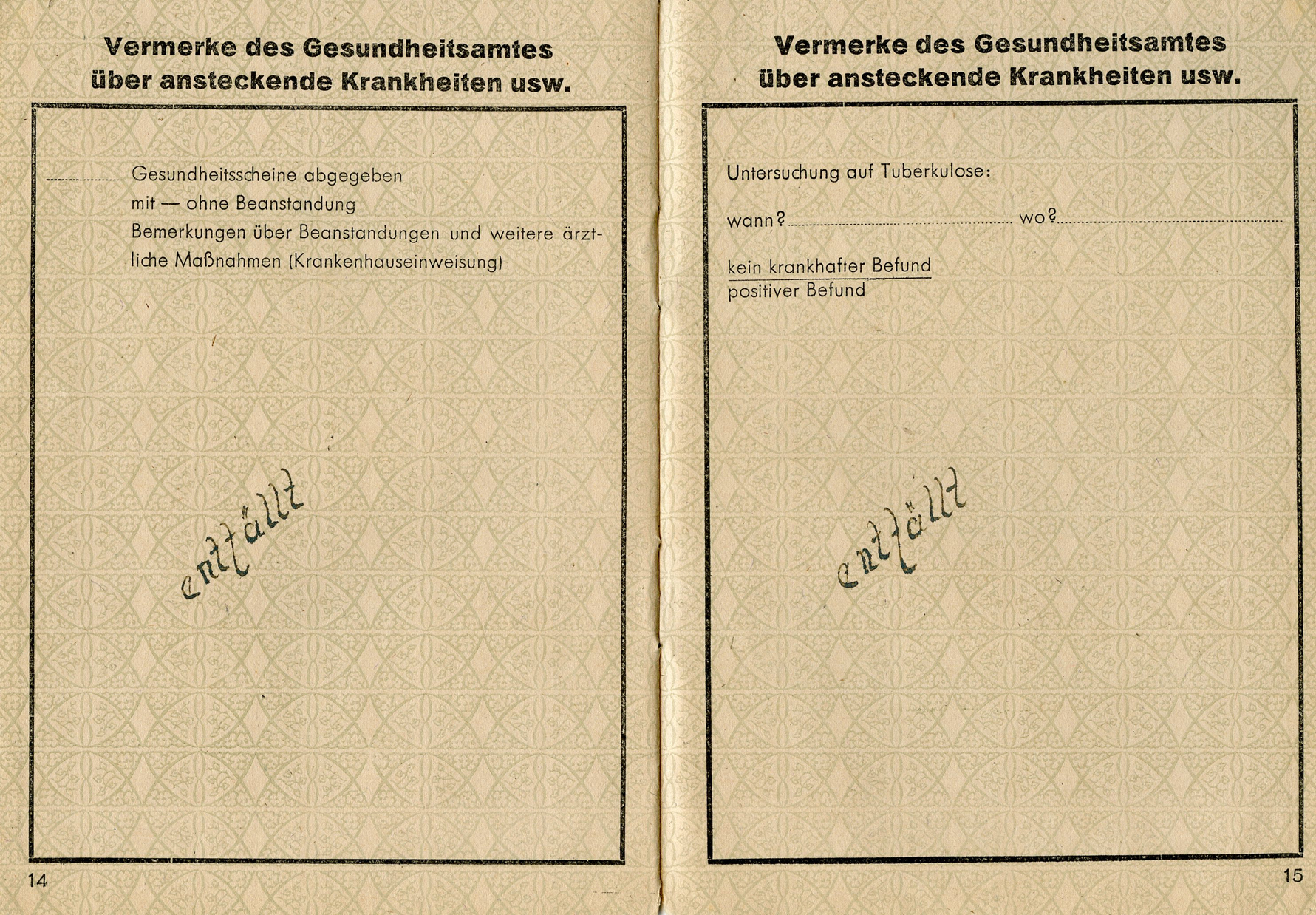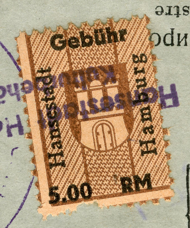 [Below: This shows another 'de-Nazified' ink stamp on the bottom right. In this case they've removed the eagle and swastika entirely.]