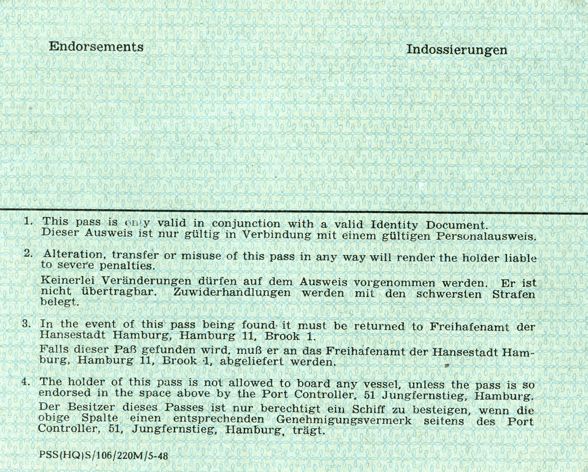 [Below: This is a Dock Pass/Hamburg Port Permit.]