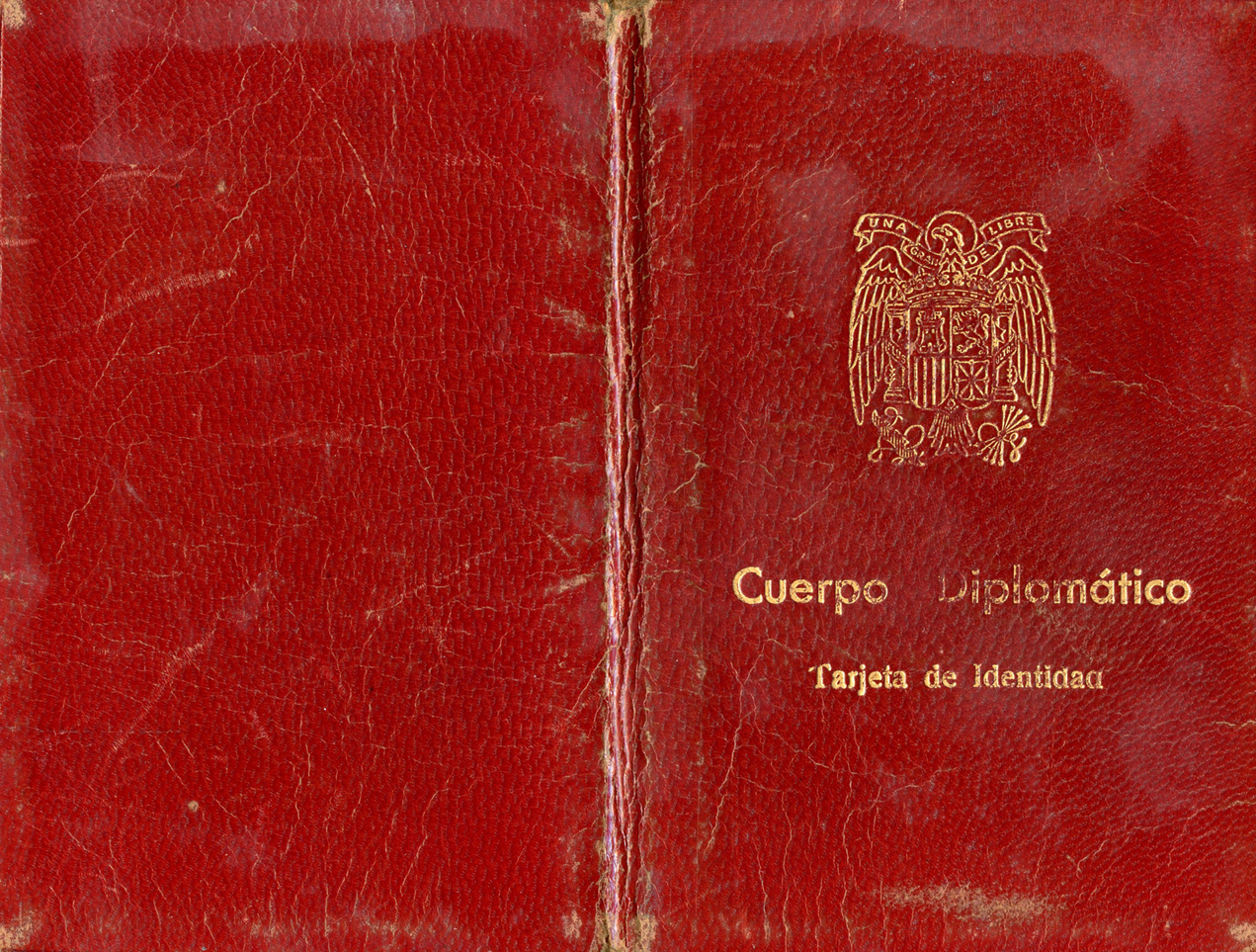 [Below: 1955 identification booklet from the Spanish Embassy. The Doctor was a member of the press within the embassy.]