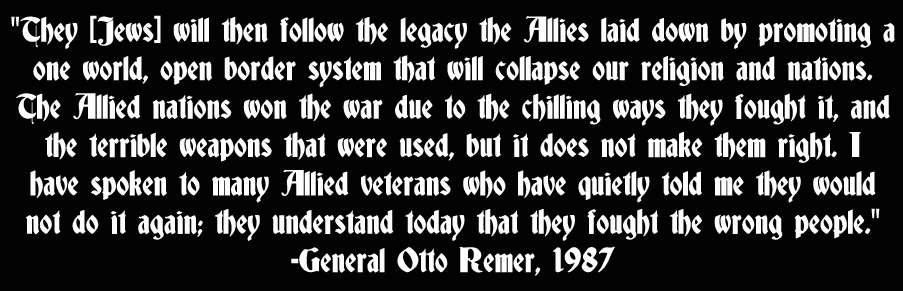 The blackness that blankets this world will never win as long as there are selfless soldiers like Wilhelm Stegmann. The darkness does not seem so absolute, so insurmountable, so invincible, when there are men and women who operate without fear, but by faith and love of their people, and iron dedication to principles like glorious National Socialism and the divine guide of our dying age: Adolf Hitler.