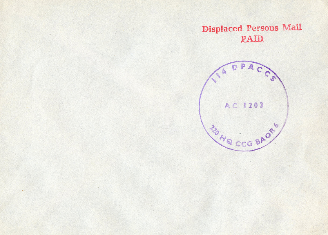 [Below: Displaced Persons Mail. Between 12 and 14.6 million ethnic Germans and German citizens were forcibly displaced, fled, or were expelled from Central and Eastern Europe between 1944 and 1950, marking the largest forced migration in human history. It is unknown how many died during this inhuman act, but conservative estimates began at a few million.]