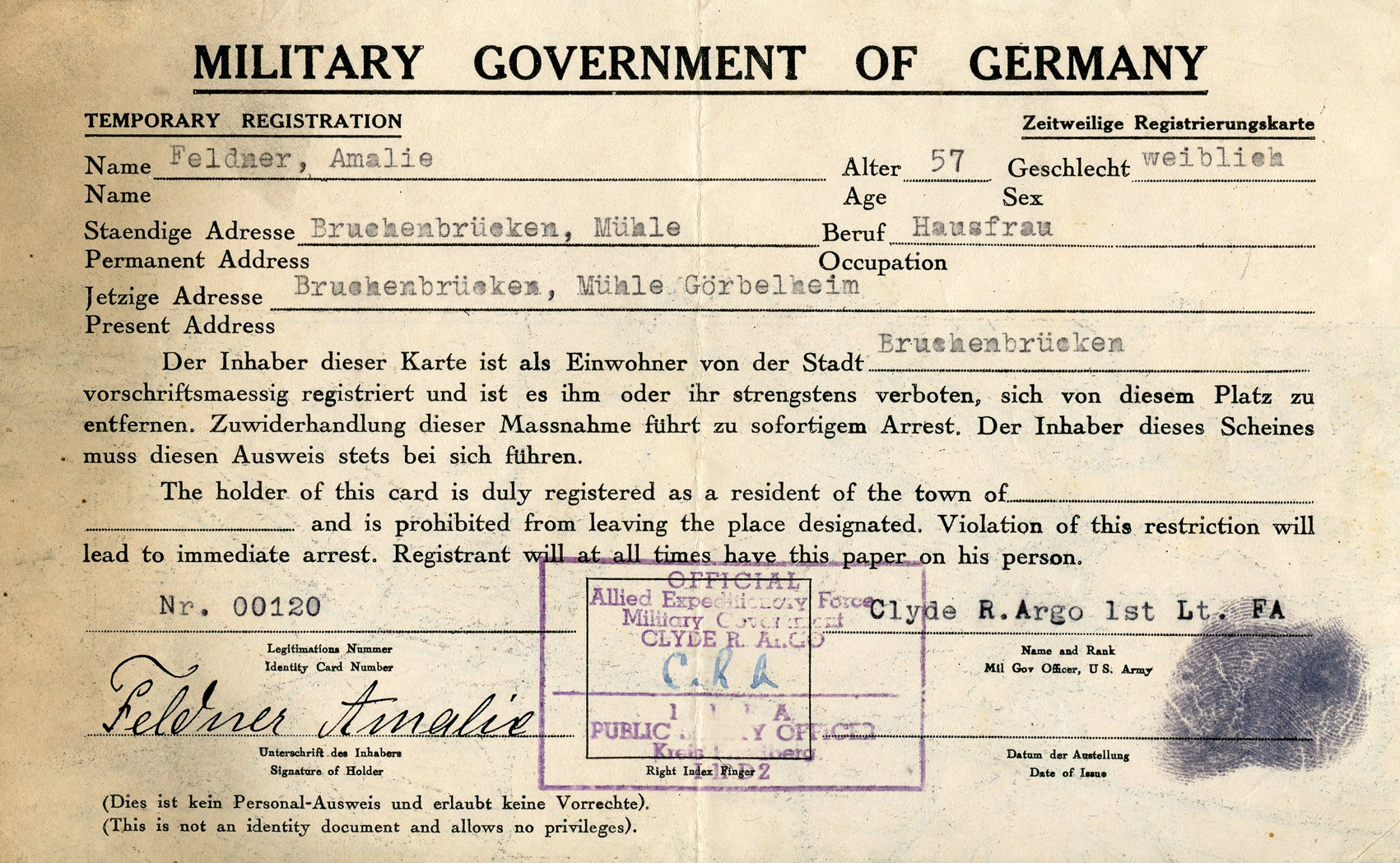 [Below: Human registration paper in American-occupied Germany, issued on August 3, 1945 also to Katherine Lüttger. Click to see reverse.]