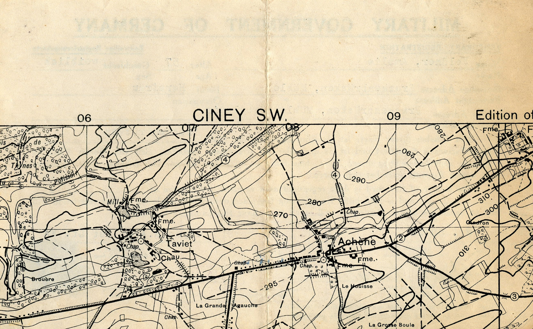[Below: Reverse. This uses the paper from an old map due to paper shortages.]