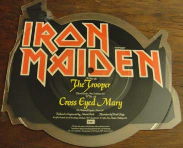Here is a 1983 shaped picture EP containing the studio tracks 'The Trooper' and 'Cross Eyed Mary.'