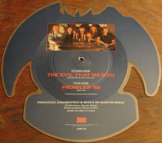 Here is a 1988 shaped picture EP containing the studio tracks 'The Evil That Men Do' and 'Prowler '88.'