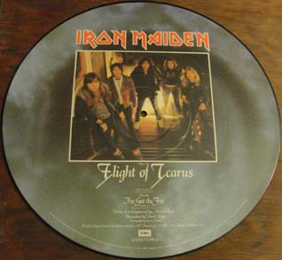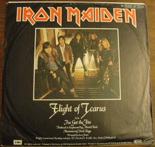 Here is a 1983 picture EP containing the studio tracks 'Flight of Icarus' and 'I've Got the Fire.'
