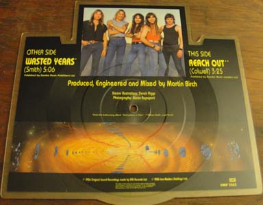 Here is a 1986 shaped picture EP containing the studio tracks 'Wasted Years' and 'Reach Out.'
