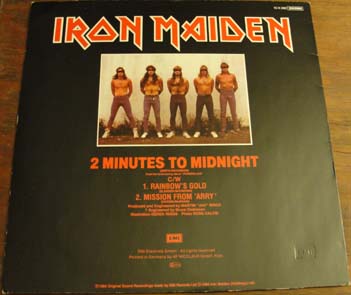 Here is a 1984 EP containing the studio tracks '2 Minutes to Midnight,' 'Rainbow's Gold' and 'Mission from 'Arry.' This EP is printed in Germany.