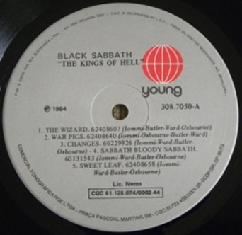 This rare South American vinyl contains the following tracks: Side A: 'The Wizard', 'War Pigs', 'Changes', 'Sabbath Bloody Sabbath' and 'Sweet Leaf'. Side B: 'Paranoid', 'Solitude', 'Black Sabbath', 'Cornucopia', 'Tomorrows Dream' and 'Laguna Sunrise'.