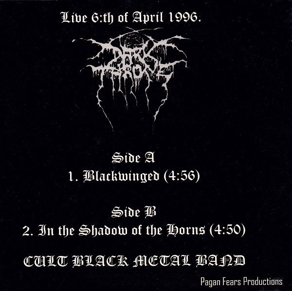 This 7" contains the live tracks 'Blackwinged' and 'In the Shadow of the Horns' recorded on April 6, 1996.