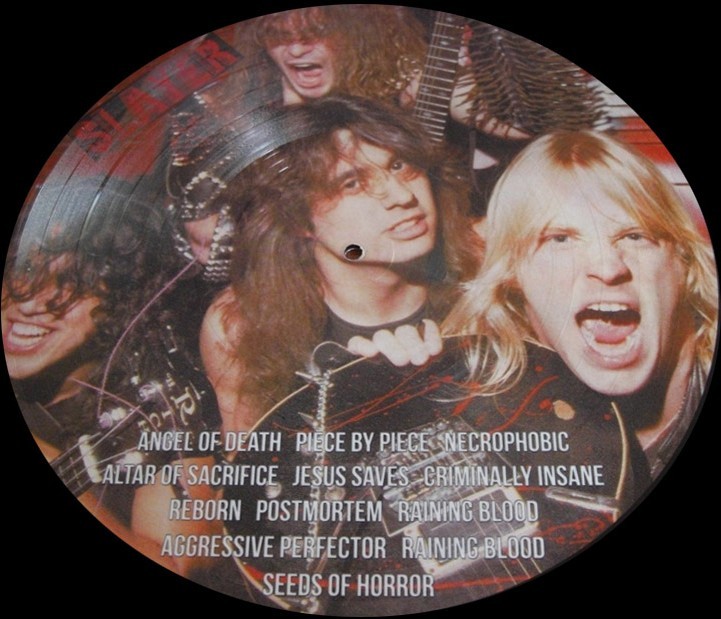 This picture LP version of the vinyl above contains the same demo versions of Reign in Blood, plus a track called 'Seeds of Horror'.