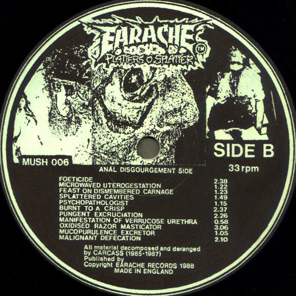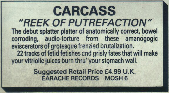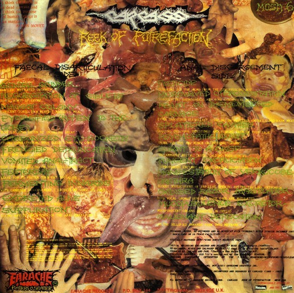 Reek of Putrefaction was released in 1988. It was insane, chaotic and quite interesting stuff! Especially all the pseudo-medical terminology. There were rumors that the band were in medical school, but in reality a lot of the medical terms and word structures in their complicated lyrics were jumbled nonsense, which is something the band admits. It looked and sounded cool though!