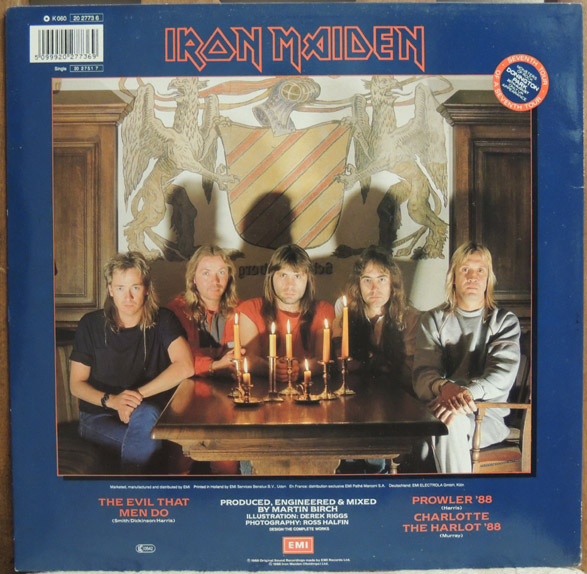 This single was released in 1988 contains the tracks 'The Evil That Men Do', 'Prowler '88' and 'Charlotte the Harlot '88'.