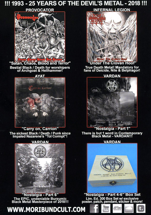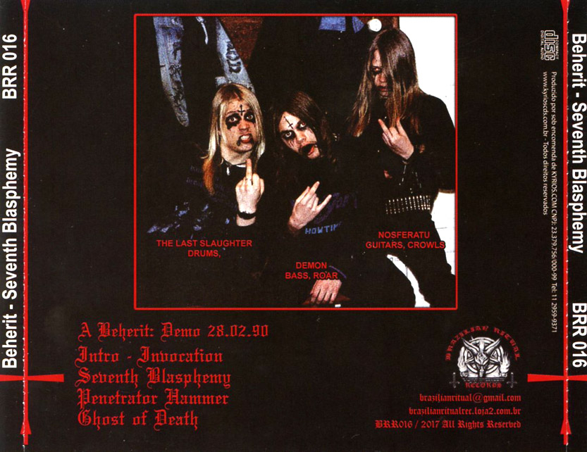 This is a 2017 CD re-release of Beherit's 1990 demo cassette. Brazilian Ritual Records also pressed an LP and a cassette version. It's been remastered and is limited to 500 copies in CD form. It's a pretty cool glimpse into Beherit's beginnings. One can hear elements of uniqueness growing, which we would later see in all their epicness in releases such as Drawing Down the Moon.